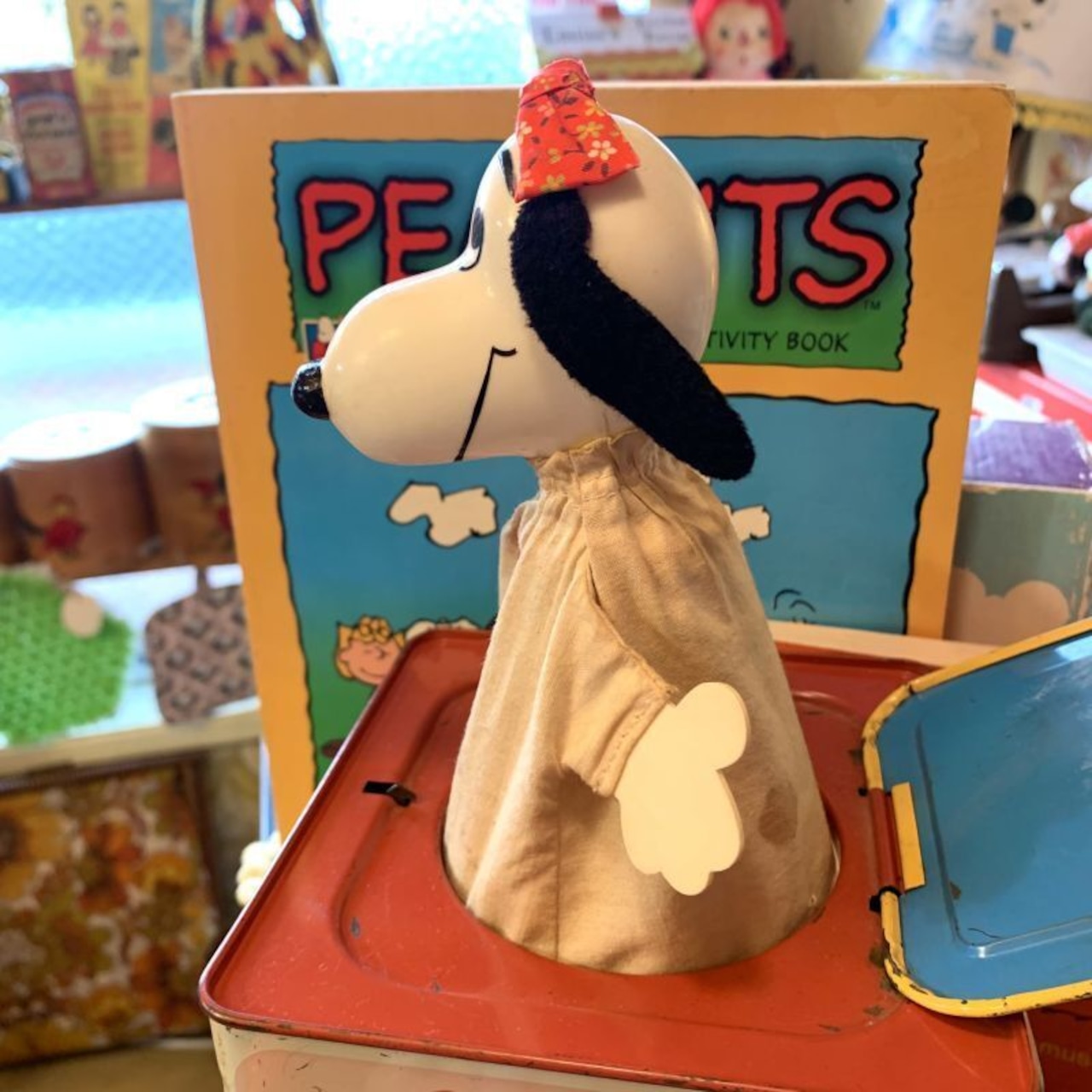 音は鳴りませんが、蓋の突起を押すとポンと飛び出してくるスヌーピーがとっても可愛いです。