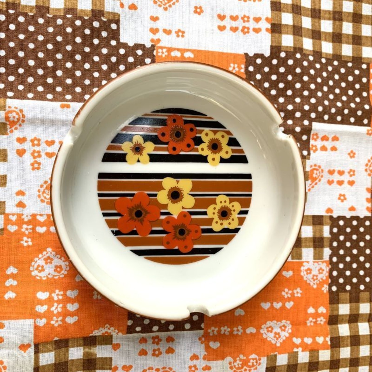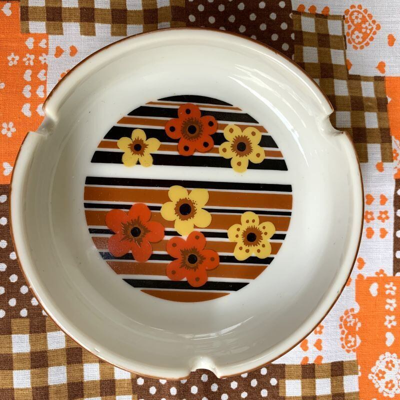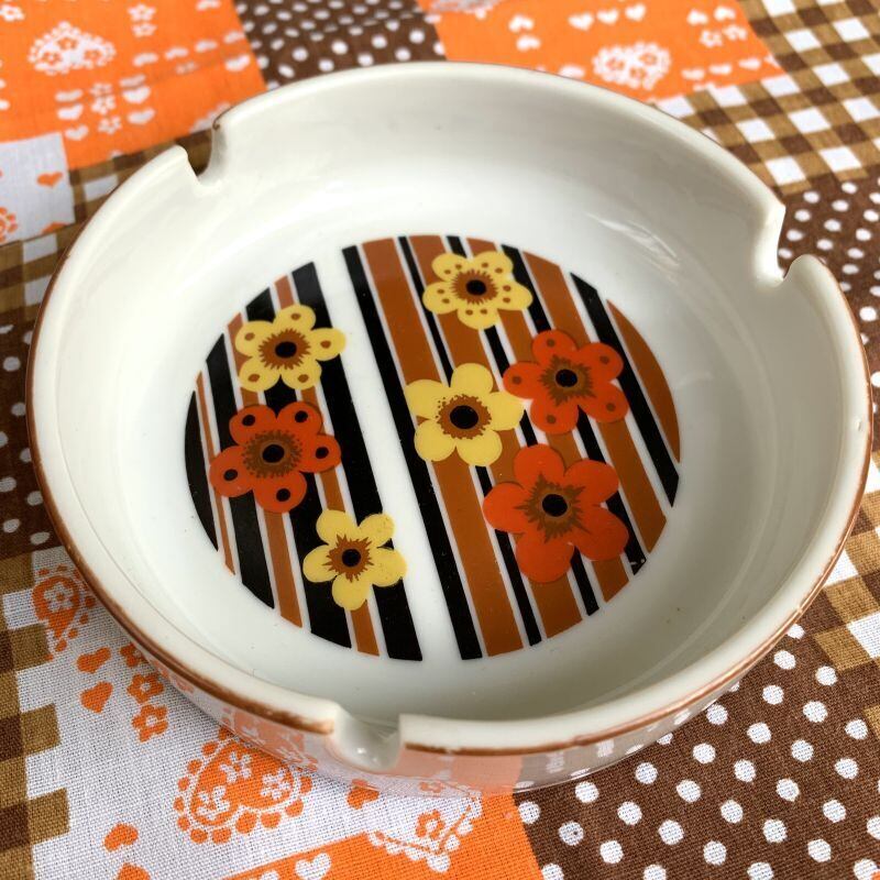 70年代 ヴィンテージ フラワープリントの灰皿です。