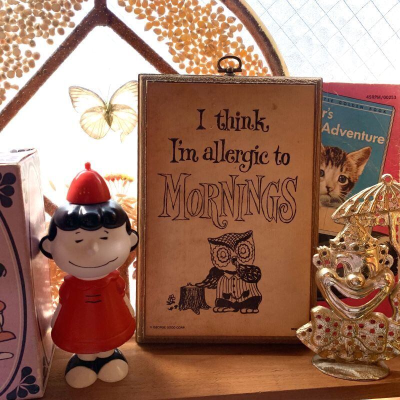 (I think I'm allergic to MORNINGS) 私は朝が大嫌いのメッセージがなんともキュートです。