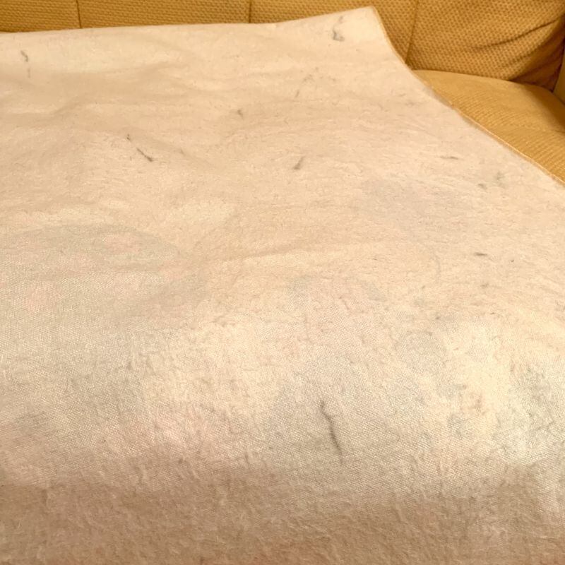 裏側はフェルトのような素材で、ふちどりはイエローの糸で縫われているお仕立てです。