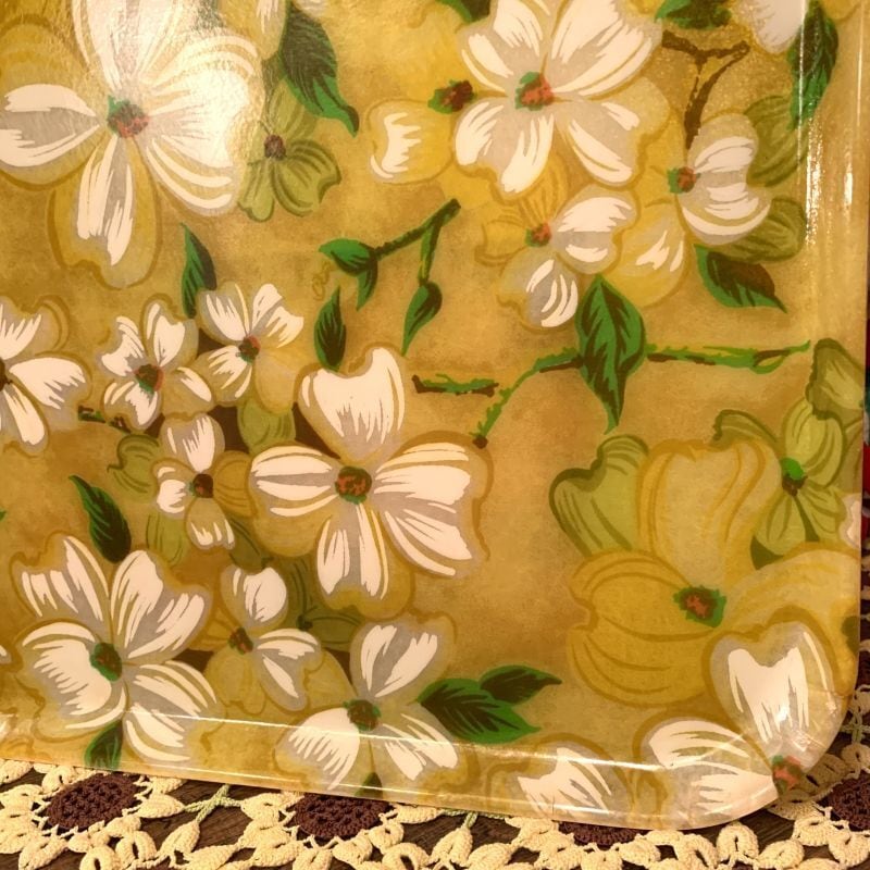 70'S USA Vintage glass fiber flower pattern tray。