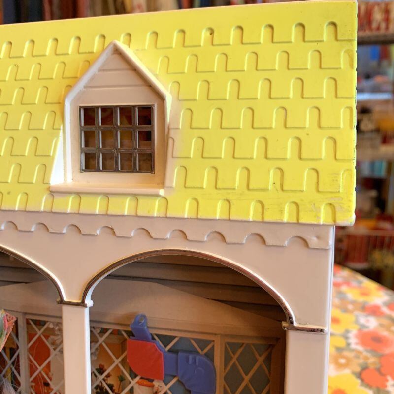 プラスチック製のお家のフレームはレモンイエローカラーの屋根や出窓、柱などデザインがレトロで可愛いです。