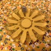 クリアなイエローにクリームカラーのペイントが施されており、ハンドペイントならではなきっちりしすぎないペイントが温かみがあり素敵です。