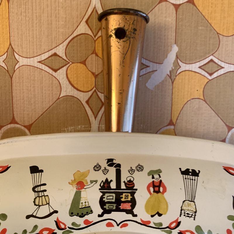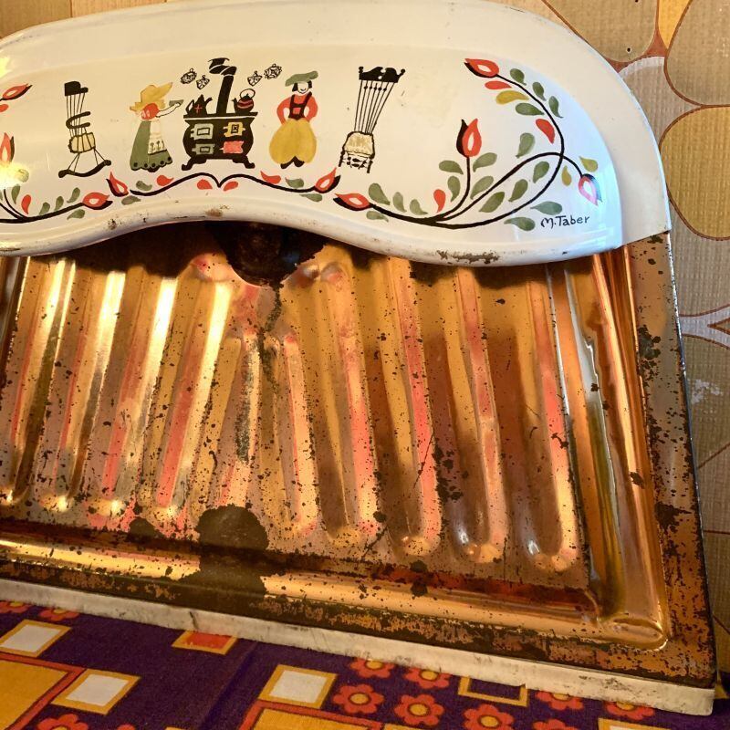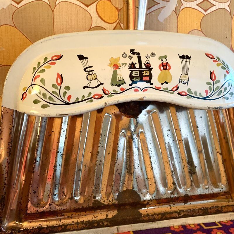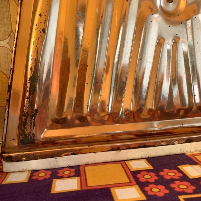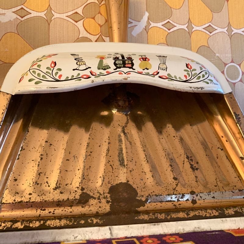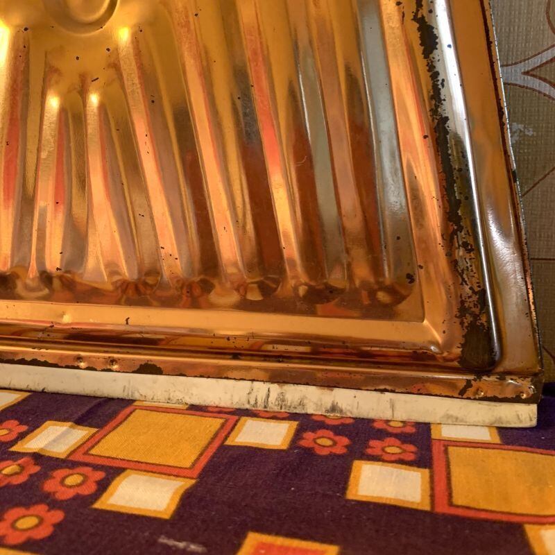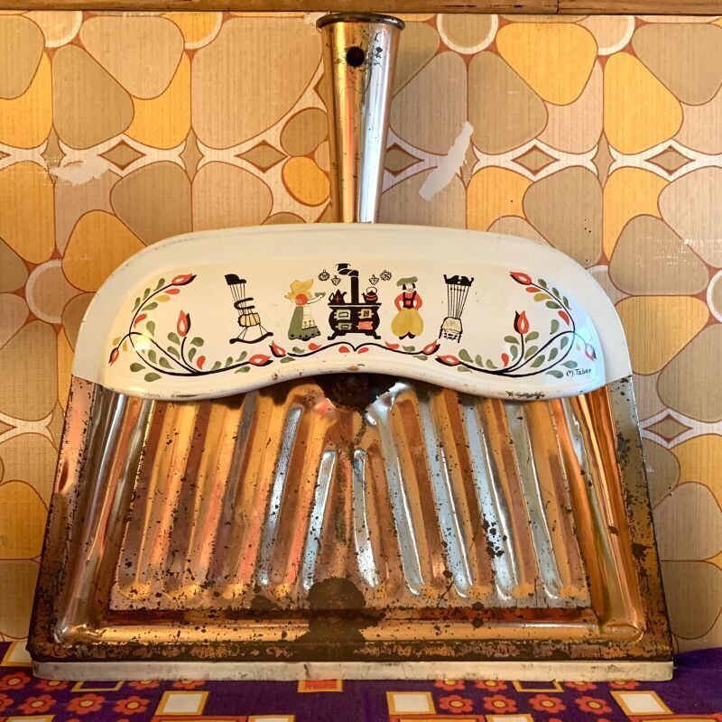 銅のようなオレンジカラーの薄いメタル製のダストパンです。