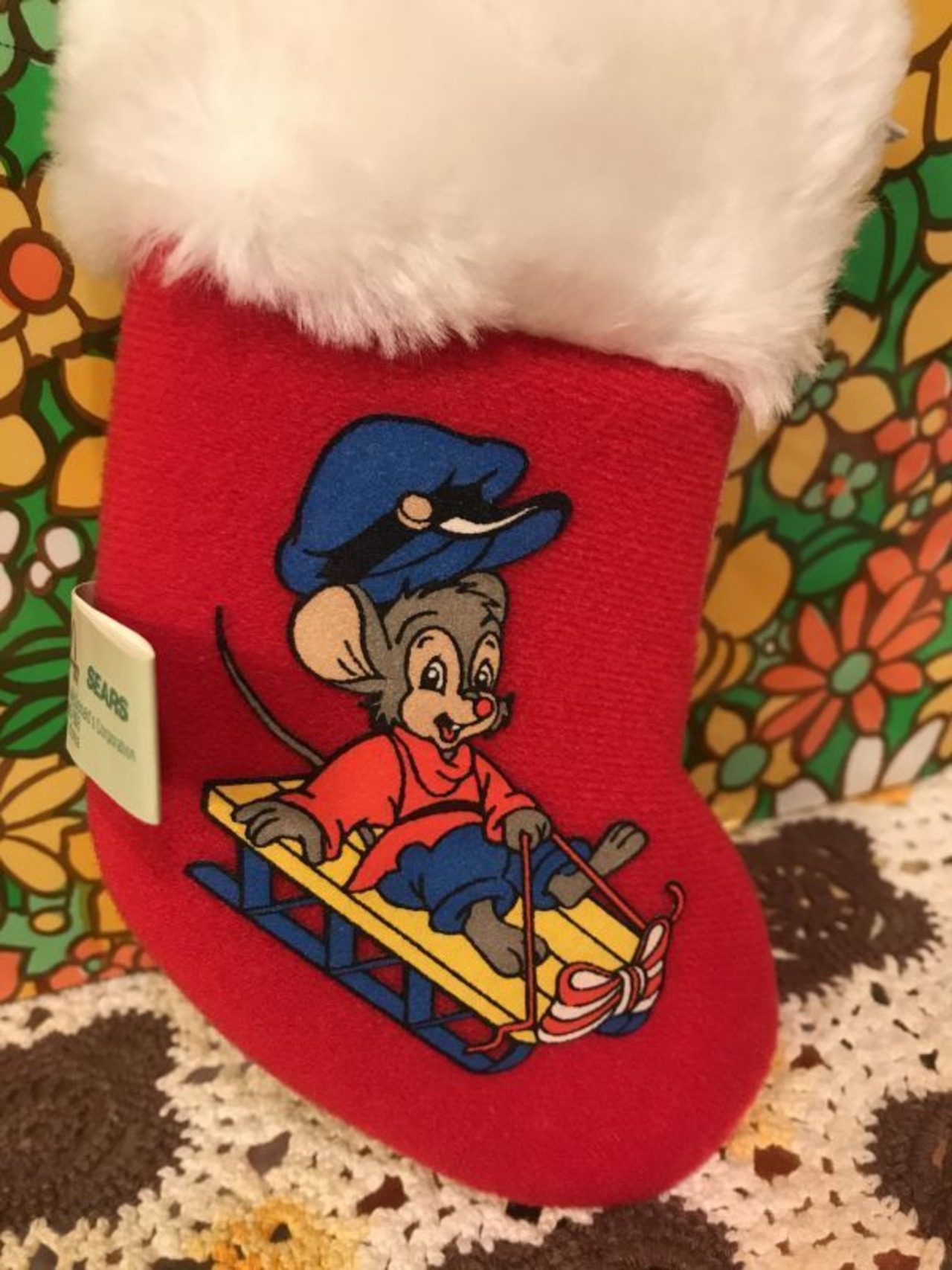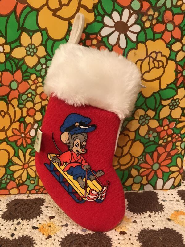 80’S deadstock Made in Korea USA買い付け Mcdonald’s AN AMERICAN TAIL フェルトブーツ オーナメントです。赤いフェルトにふわふわファー、そりに乗ったAN AMERICAN TAILの絵柄がとっても可愛いです。ファスナー付きなので キャンディーなどを入れてプレゼントなどにも おすすめです。