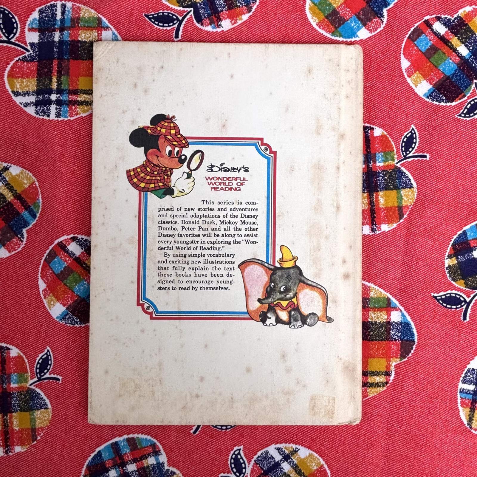 表側の表紙のカバーは賑やかな小人さんとうっとりな表情の白雪姫、裏側は探偵ミッキーとダンボさん。