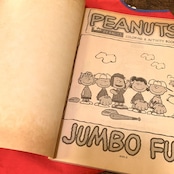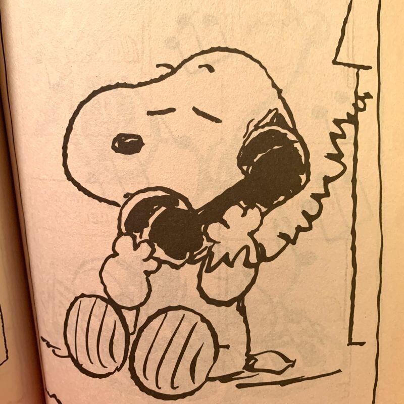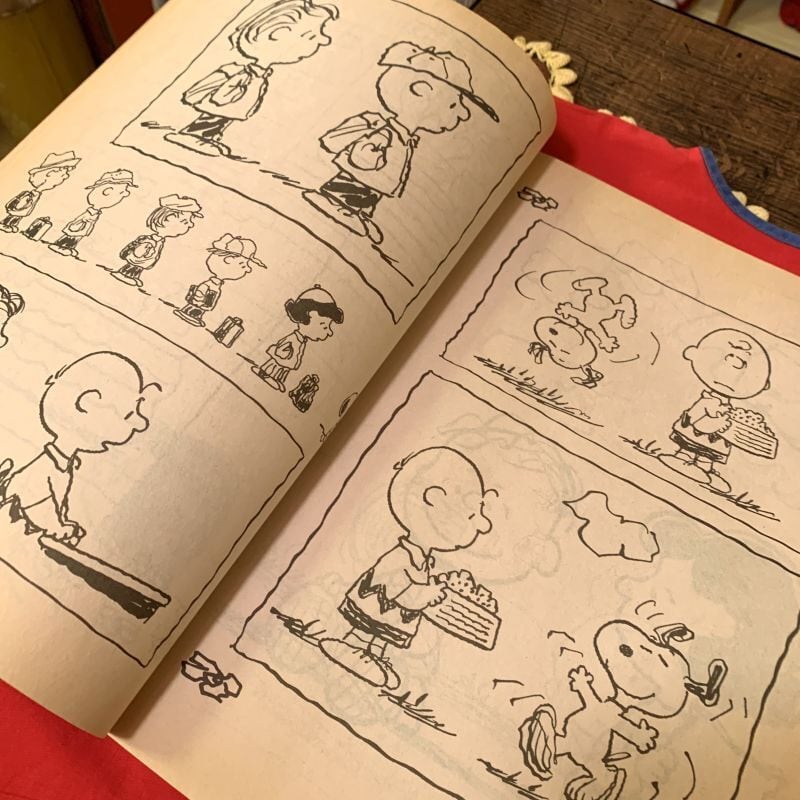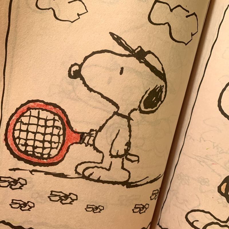 濃いイエローに手描きのようなレッドカラーの文字のフォントやスヌーピー達のイラストがとっても可愛いです。
