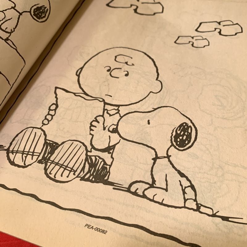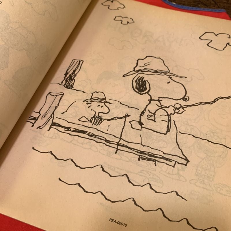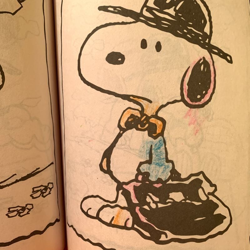 スヌーピーと愉快な仲間達がいっぱいの塗り絵も楽しめる本です。