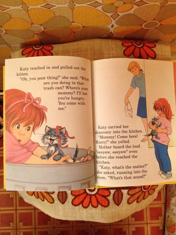 80'S USA A HAPPY Day Bookシリーズの可愛い絵本です。水彩画のようなタッチの挿絵がとっても可愛いです。ネコさんや女の子の表情も可愛いですね。表紙はハードカバーです。表紙の裏側に色褪せ 表側上の端に僅かな破れ 若干の擦れやキズがあります。ハードカバーなのでお気に入りの雑貨の横に立てかけてディスプレイしても可愛いですね。