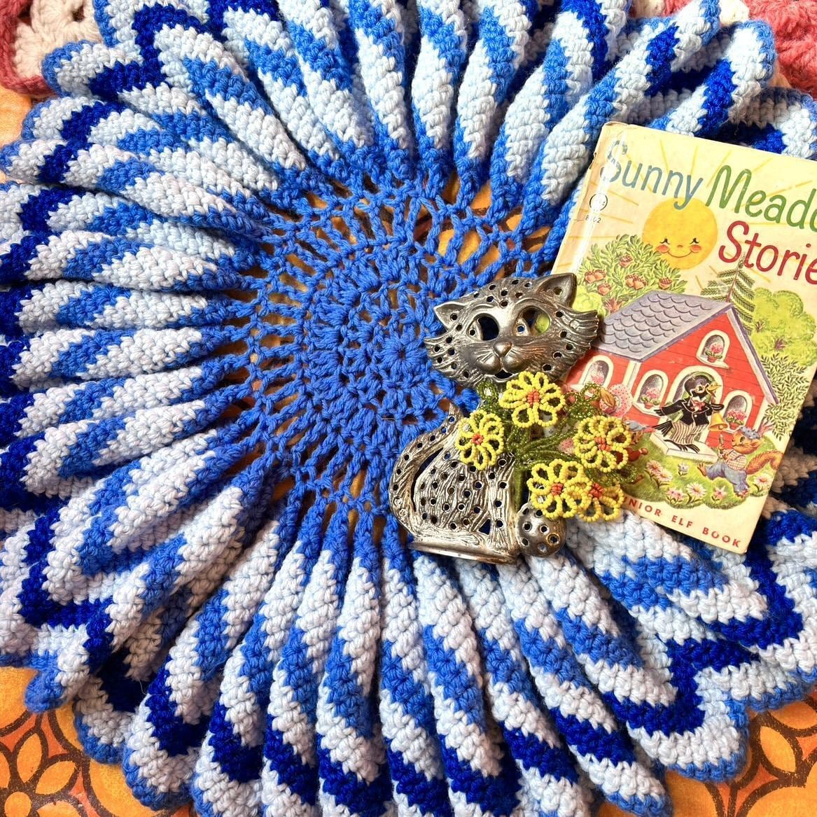 70年代 ヴィンテージ 当時のハンドメイド1点もの フリルフラワー ニットカバーです。