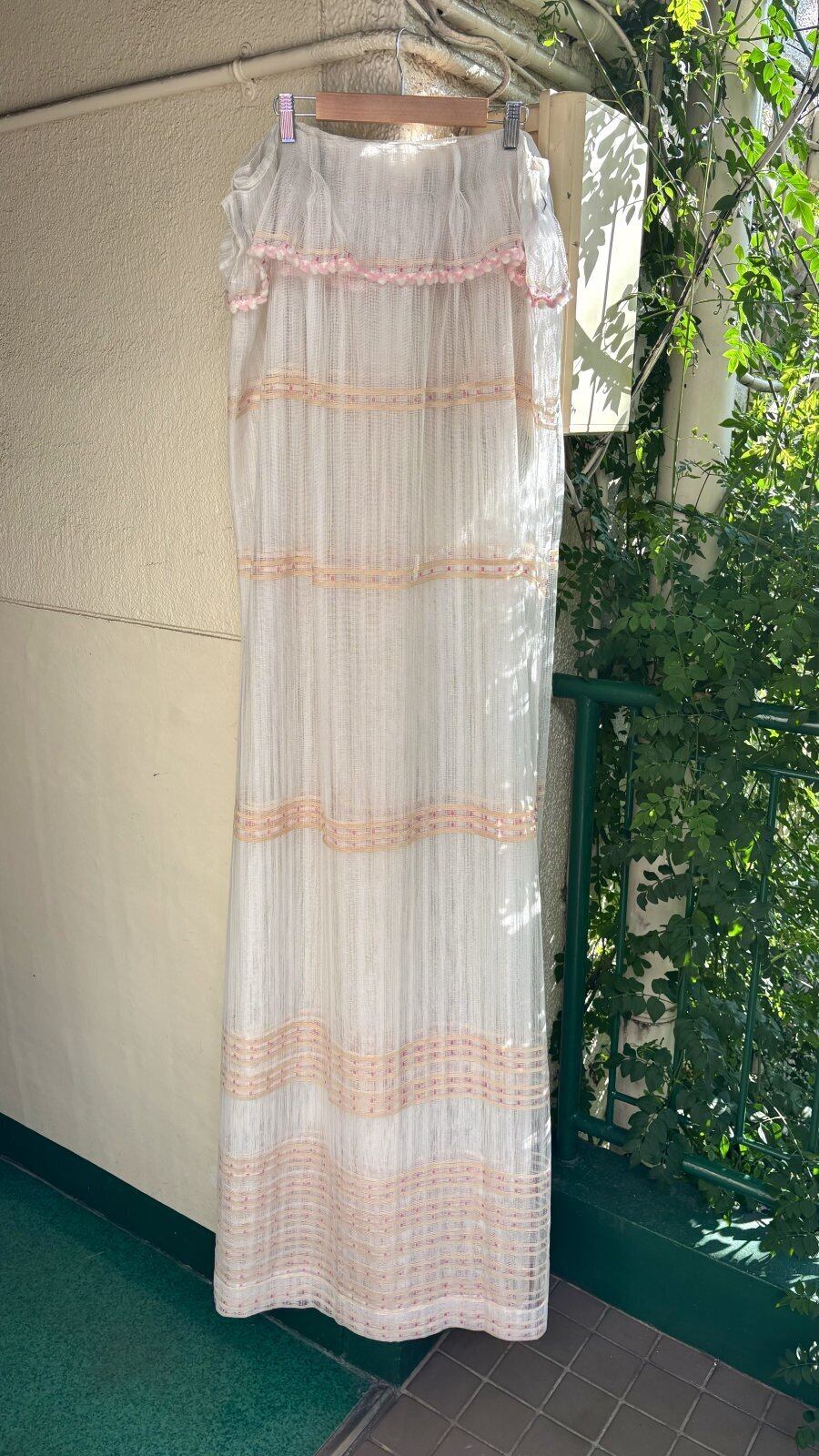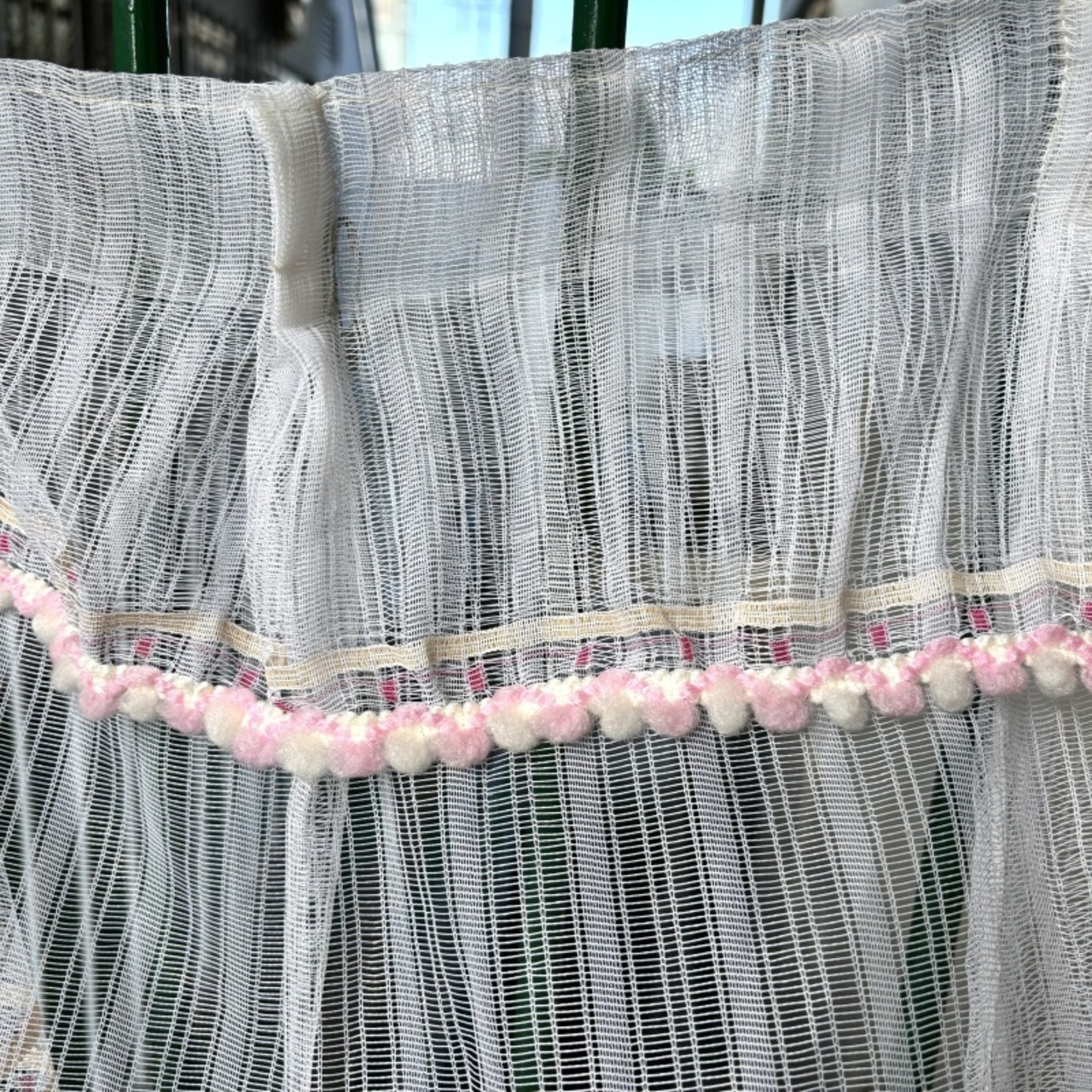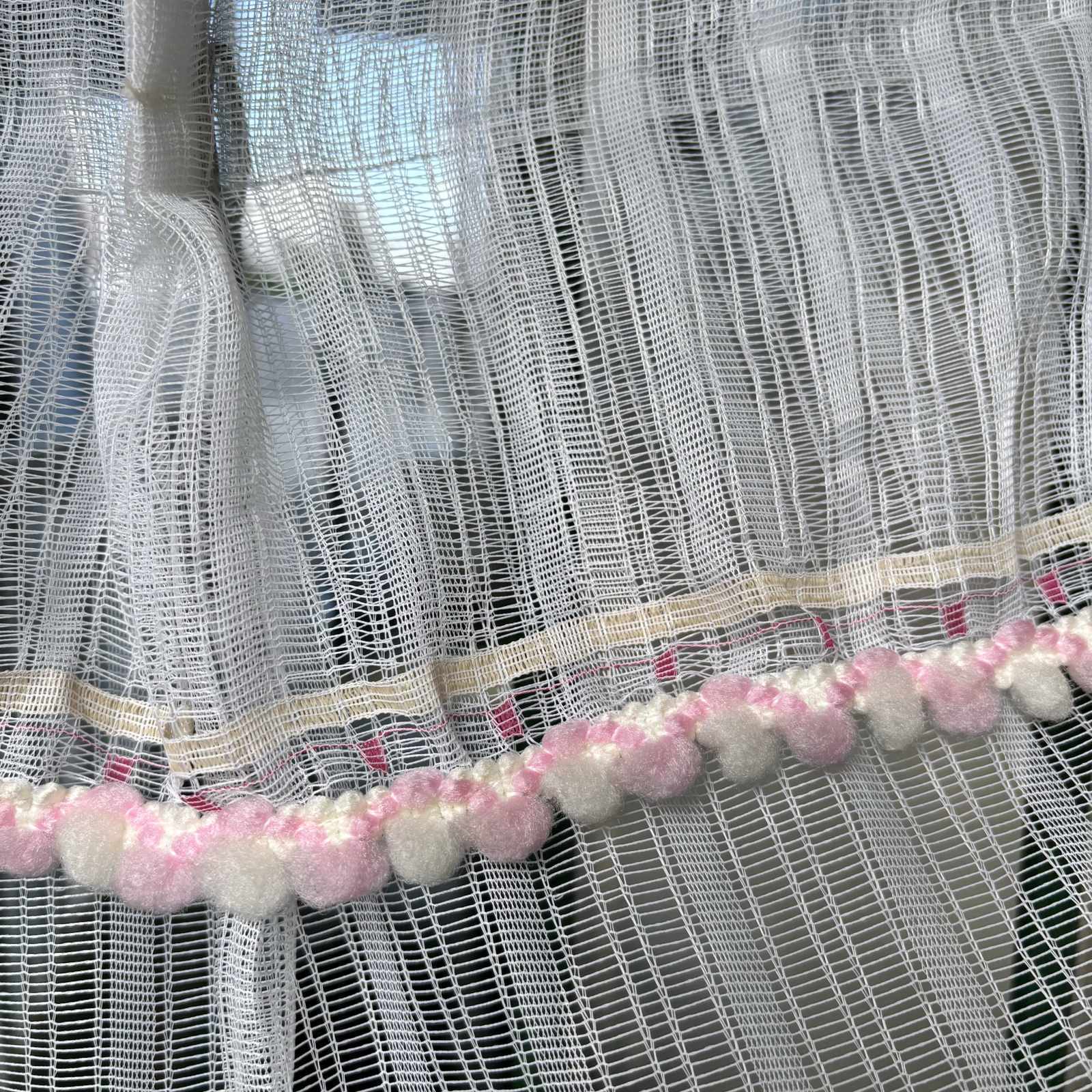 70'S Vintage pk&wh ponpon lace curtain。