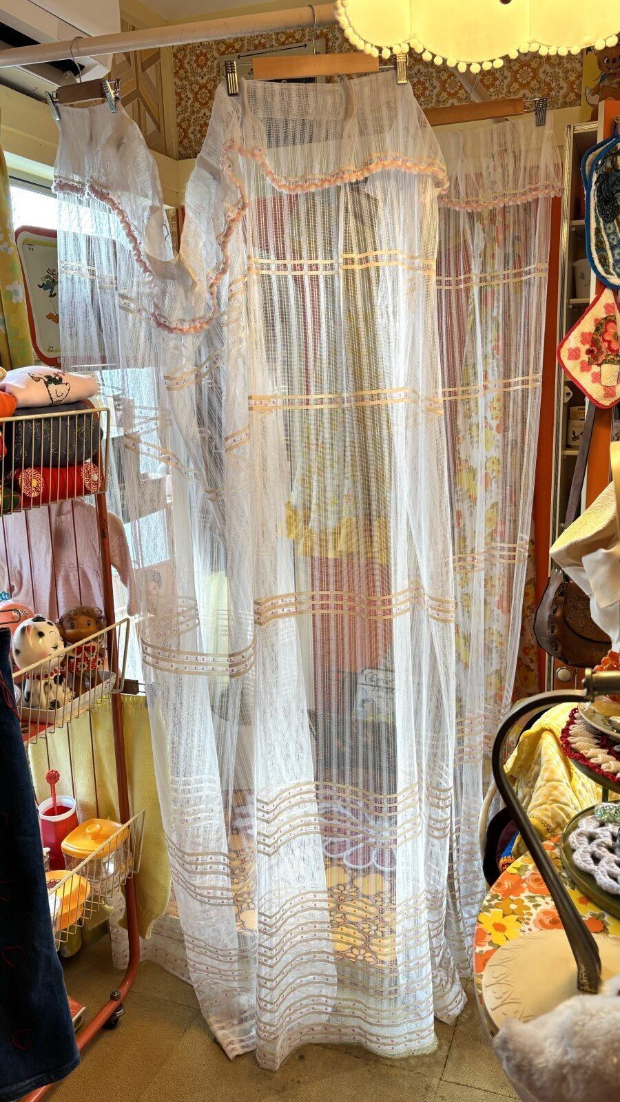 Vintage pk&wh ponpon lace curtain