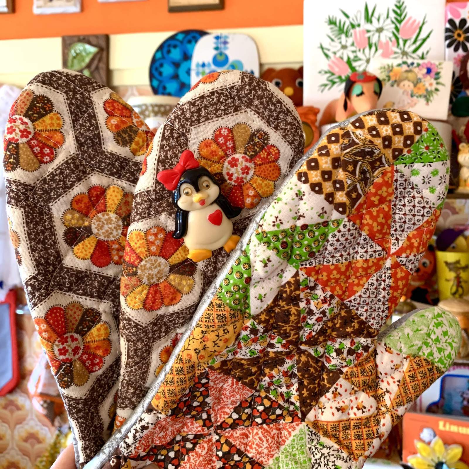 70年代から80年代 パッチワークプリント キルティングミトンです。