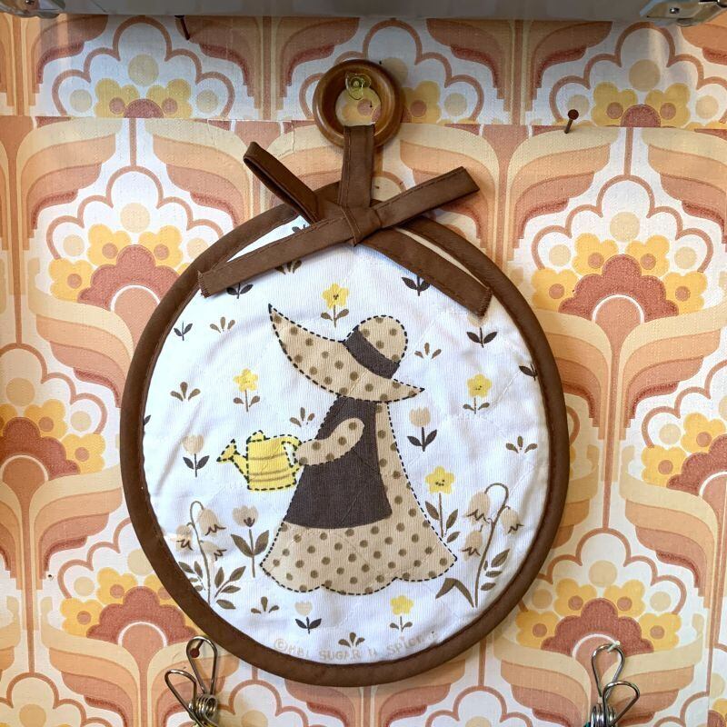 70'S USA Vintage holly hobbie quilting trivet。