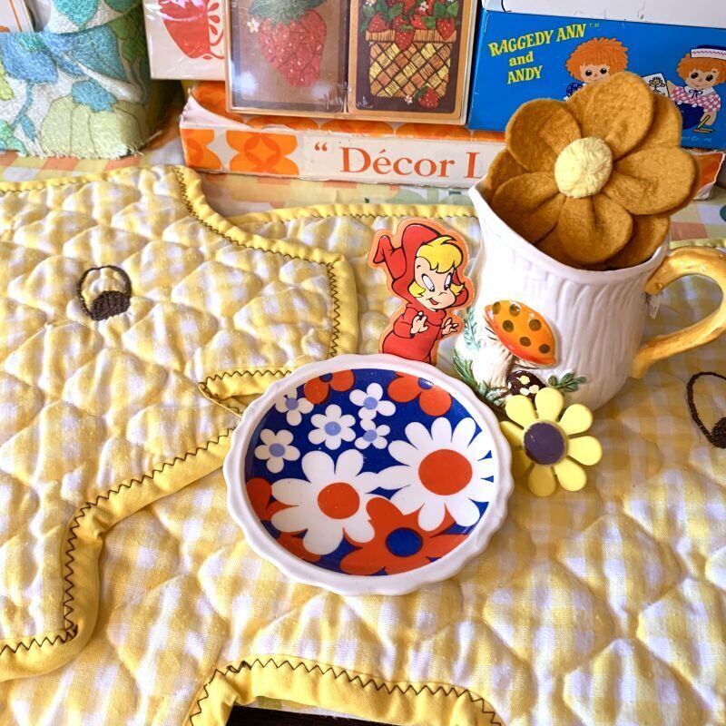 70年代 ヴィンテージ 当時のハンドメイド1点もの ブタさんのキルティング ランチョンマットです。