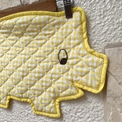 フカフカとしたキルティングのお仕立てで、ランチョンマットとしてはもちろん、棚の上などのコーナーマットとしてご使用頂いたり、壁に掛けて飾って頂いても可愛いかと思います。
