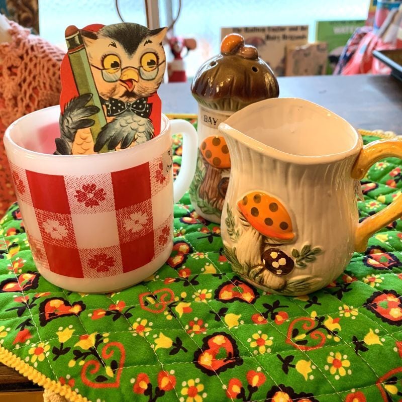 70'S USA Vintage heart&flower quilting place mat。