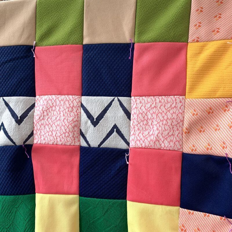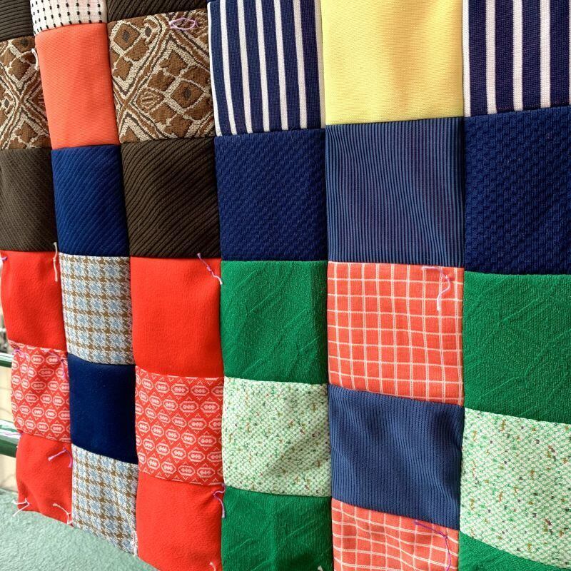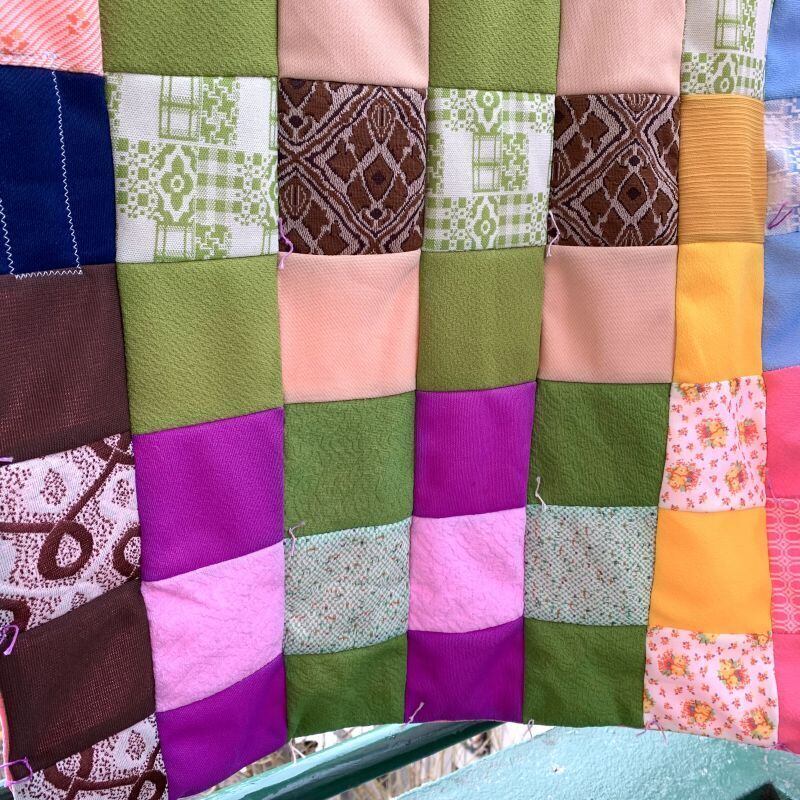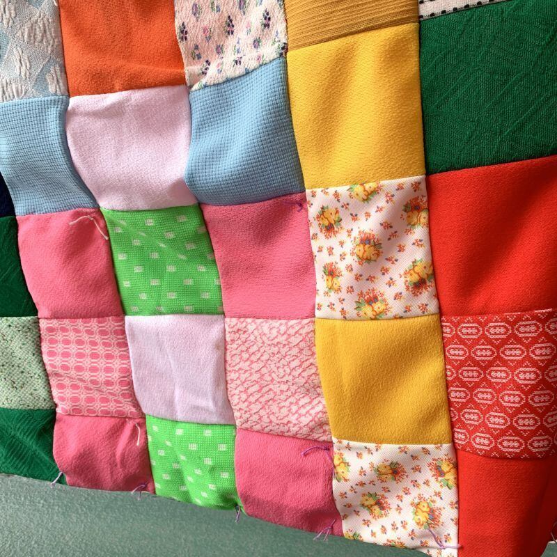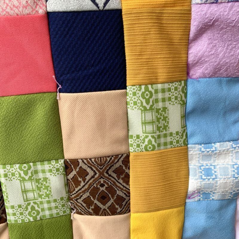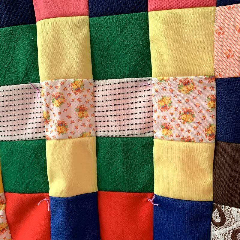さまざまなヴィンテージのポリ生地を贅沢に使用した作りで、発色や生地感、柄などヴィンテージならではな、とっても可愛い雰囲気があります。