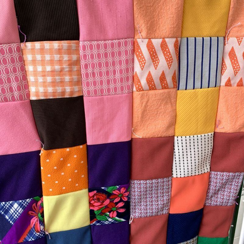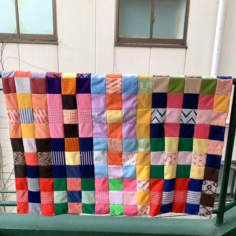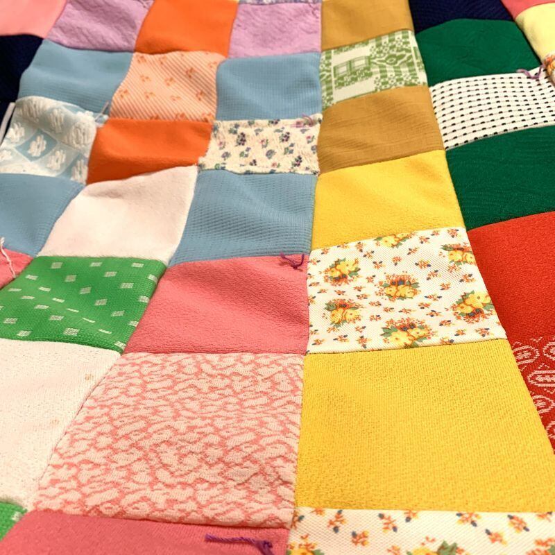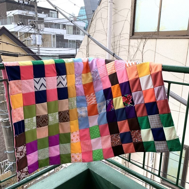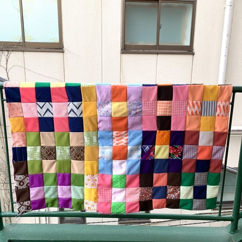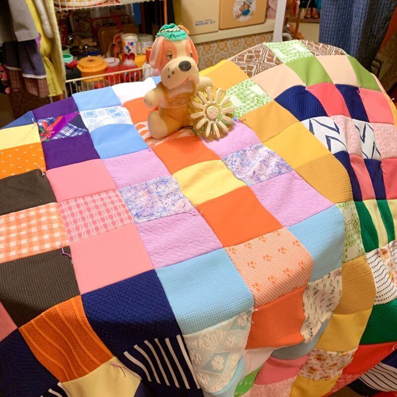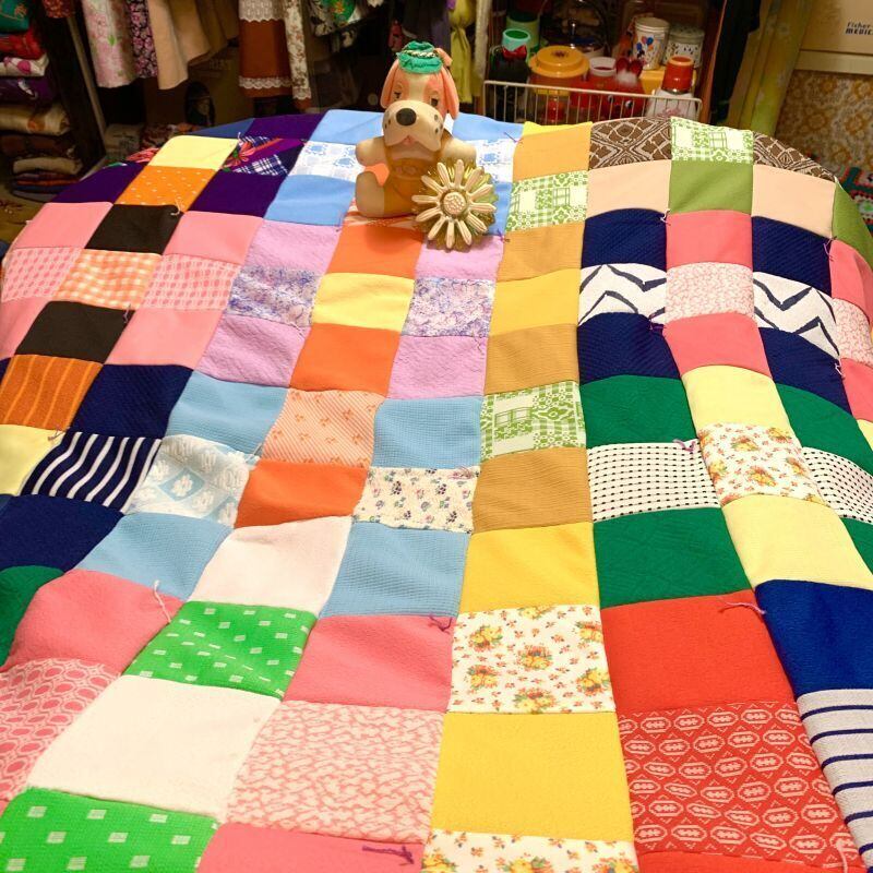 60年代から70年代 当時のハンドメイド1点もの ヴィンテージ リアルパッチワークのキルトカバーです。