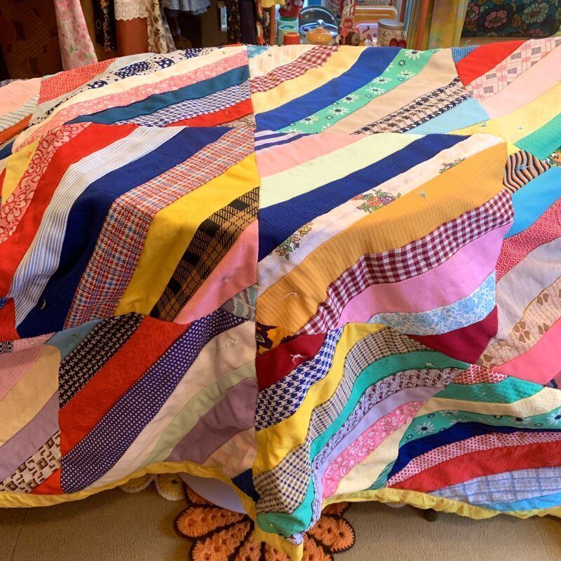 70'S USA VINTAGE Patchwork quilt。