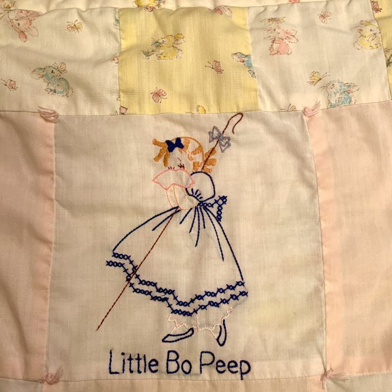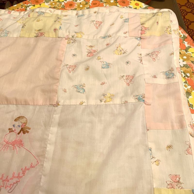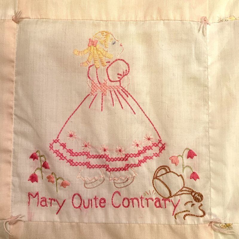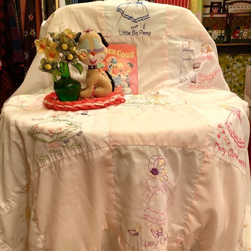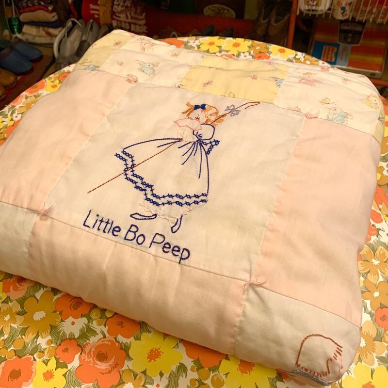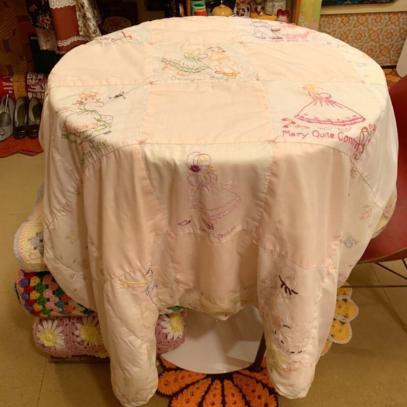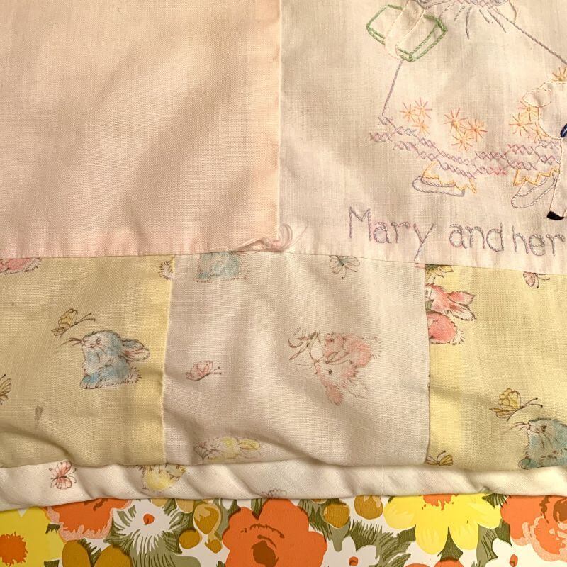 60年代 当時の手刺繍、ハンドメイドのキルトです。