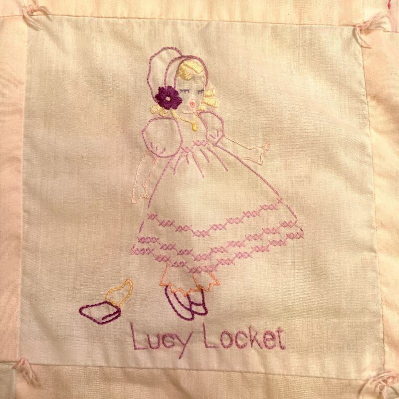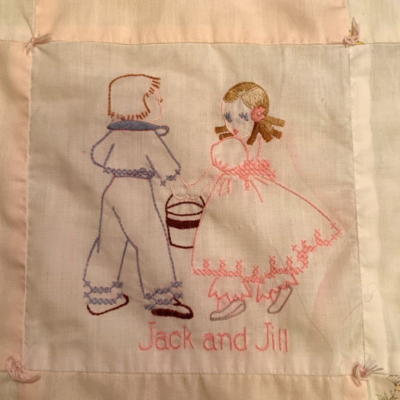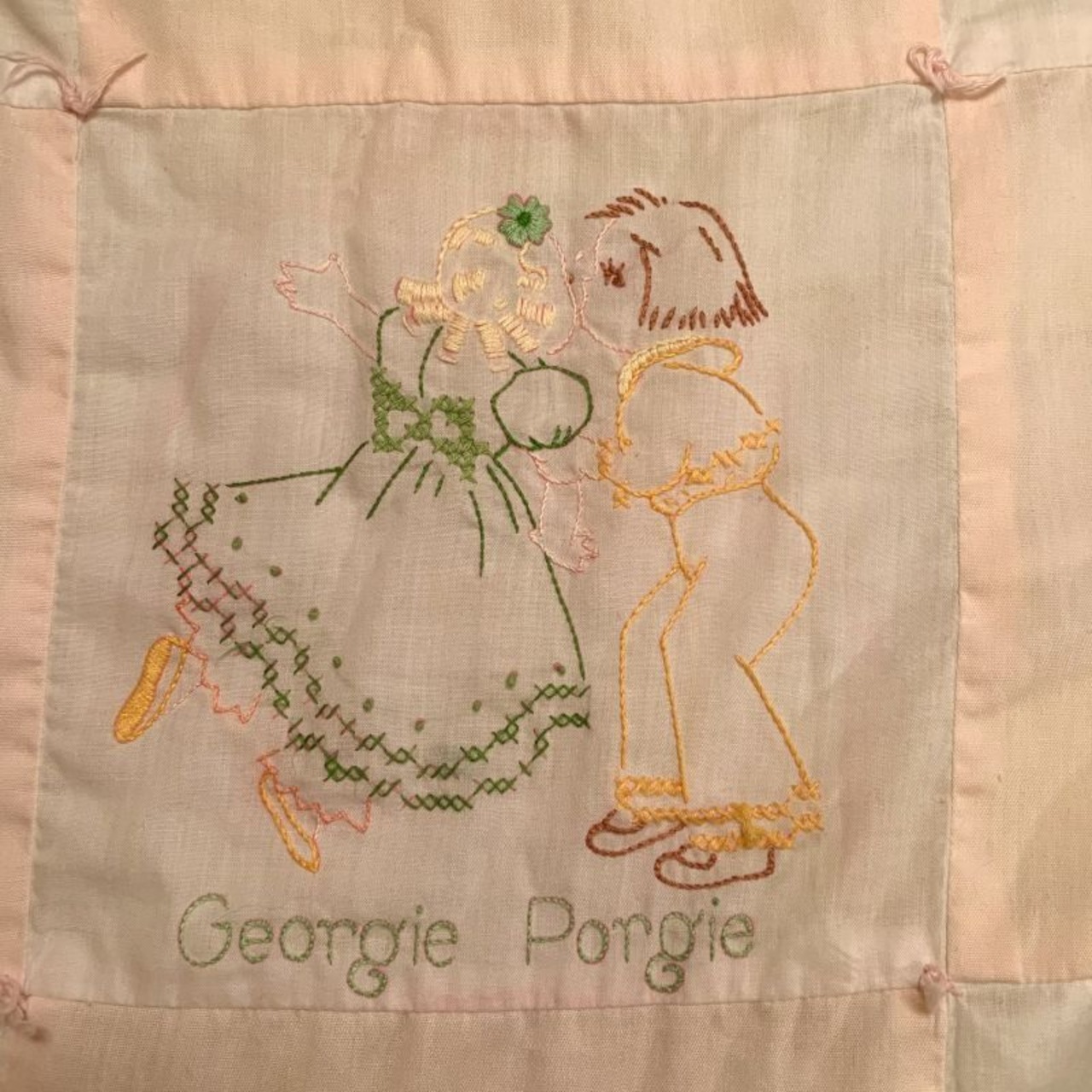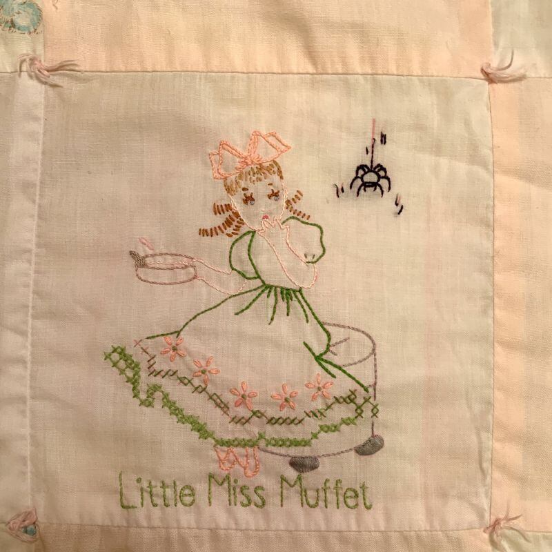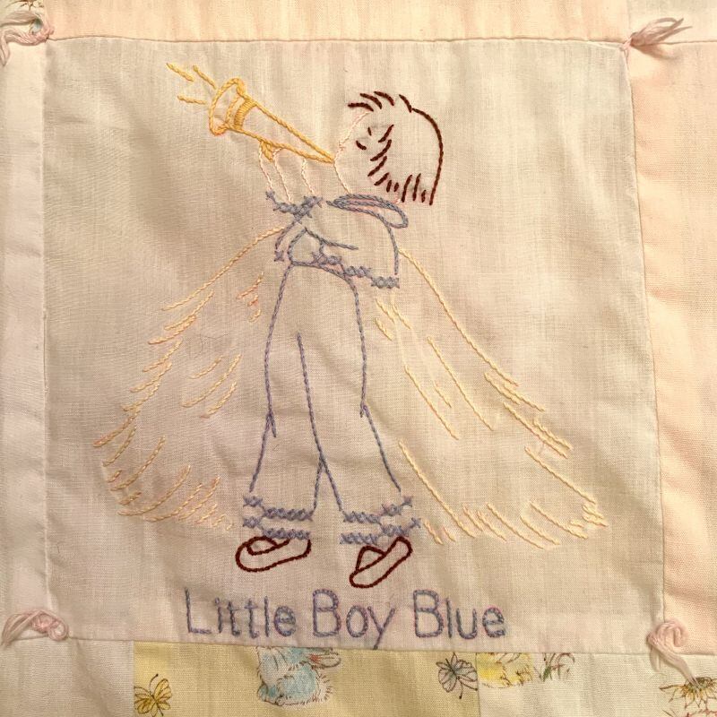 60年代 当時の手刺繍、ハンドメイドのキルトです。