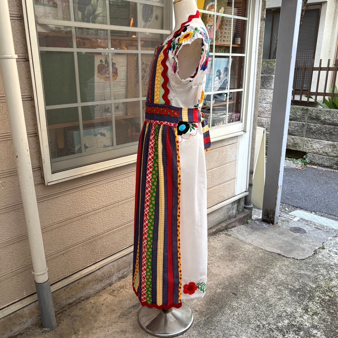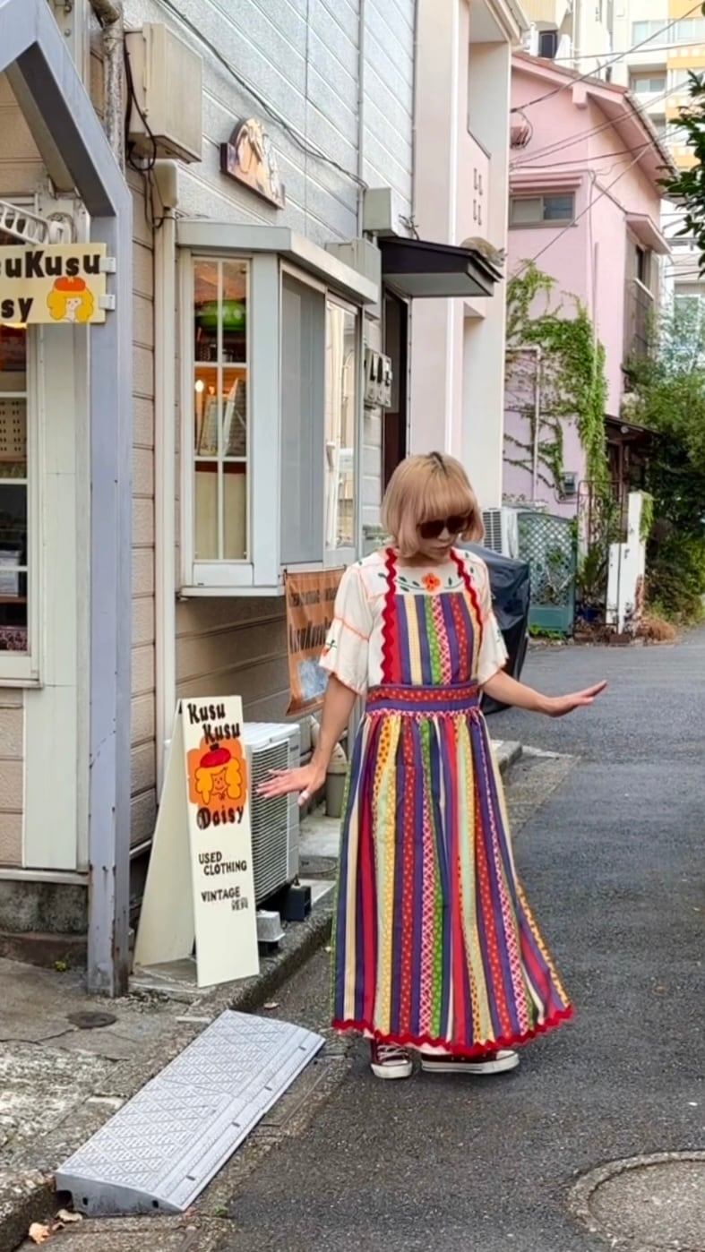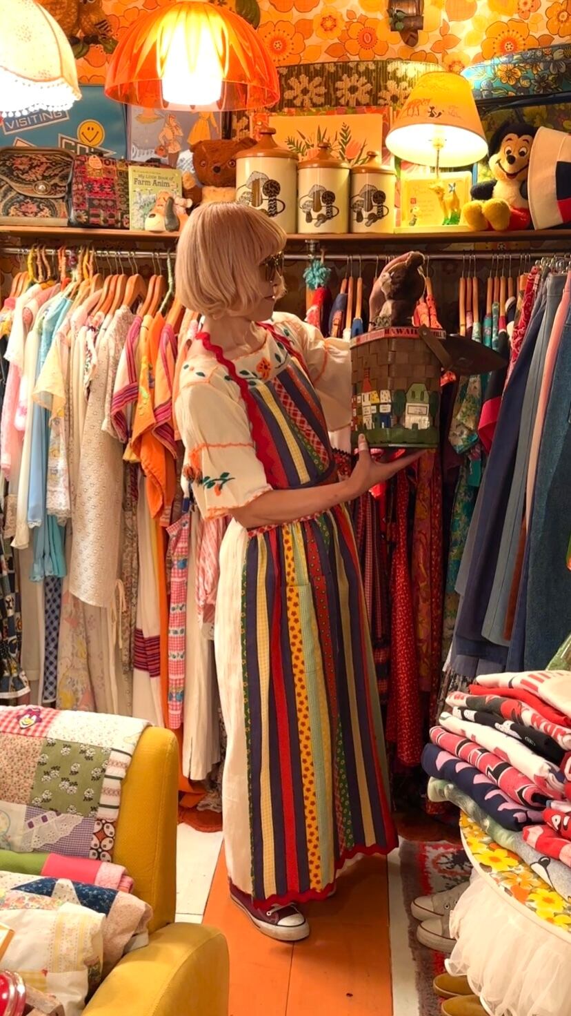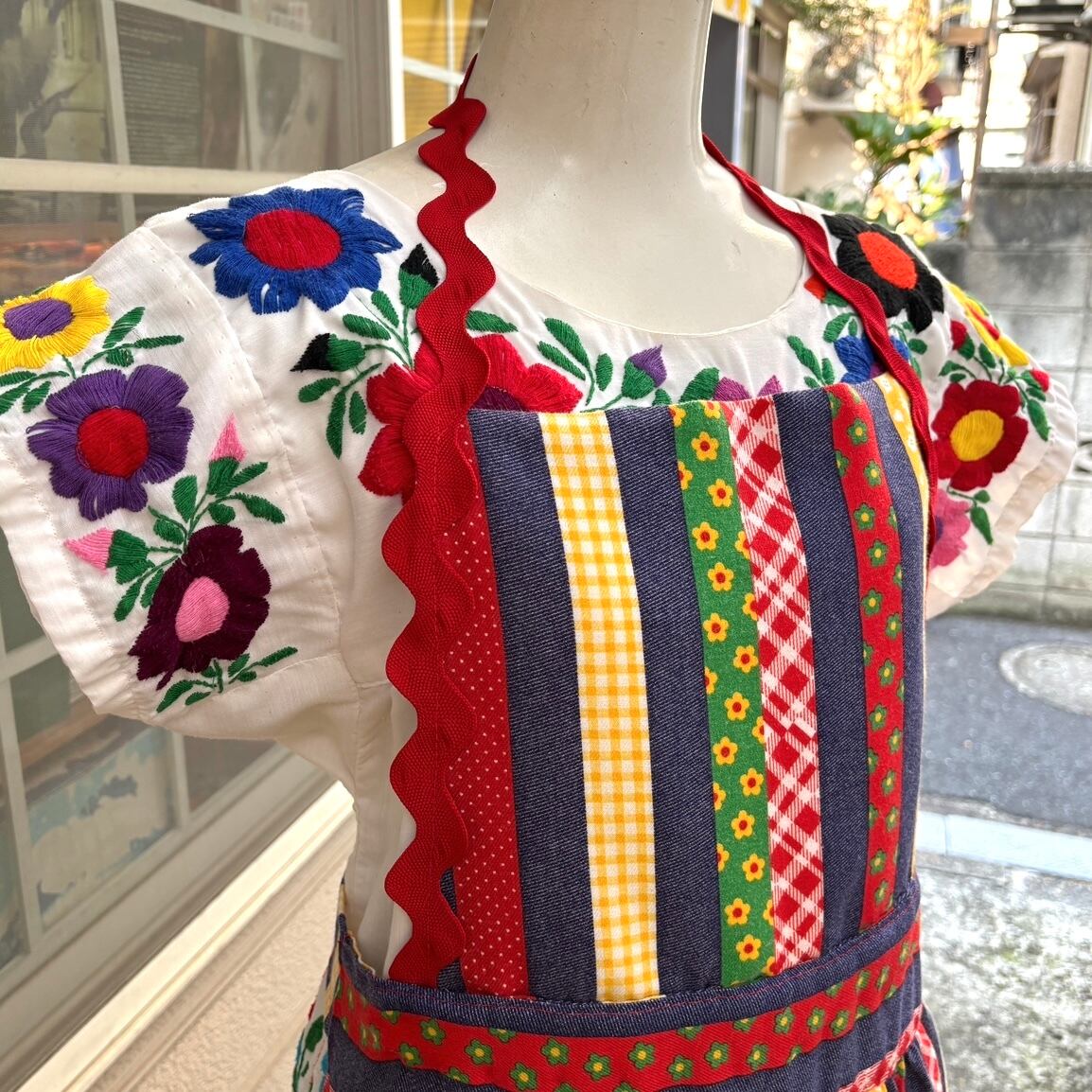 70'S USA Vintage colorful patchwork print apron dress。