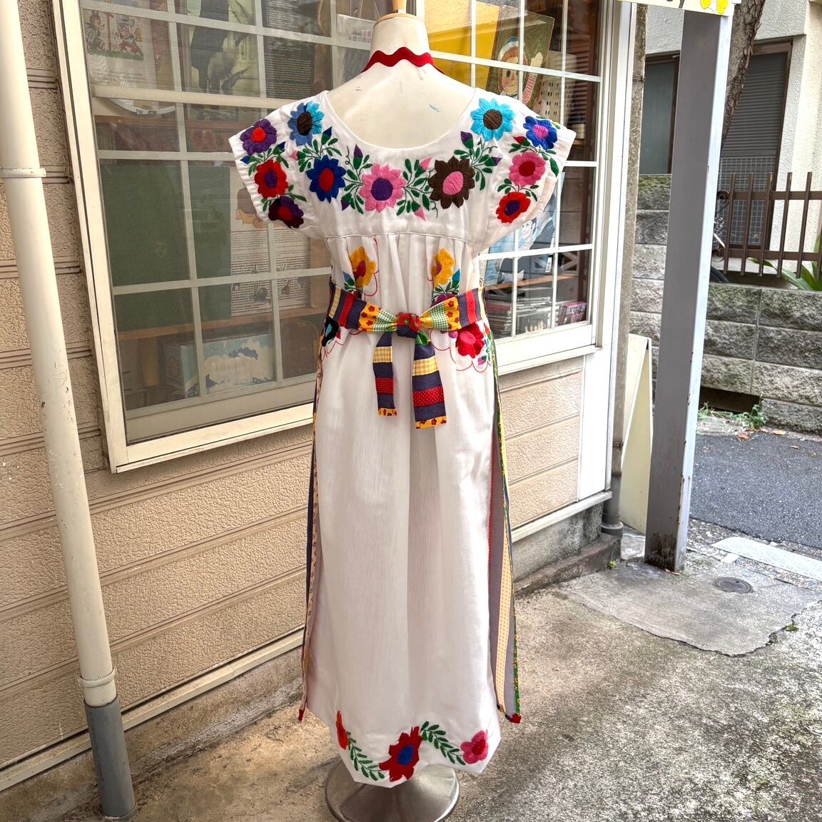 右側にポケットのあるお仕立てで、ウエストの両サイドにリボン紐があります。