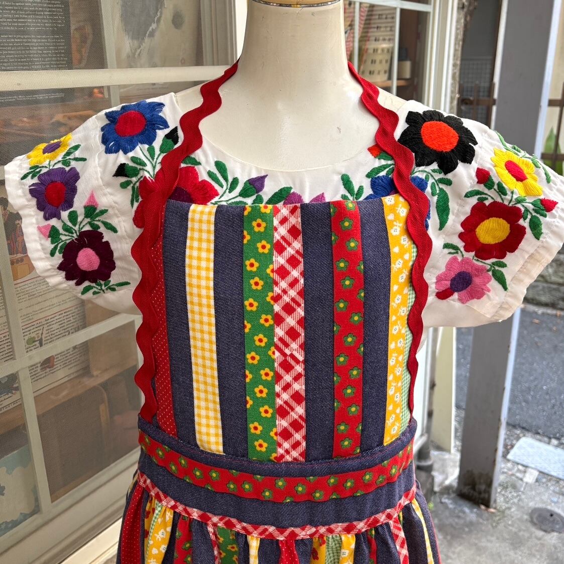 Vintage colorful patchwork print apron dress