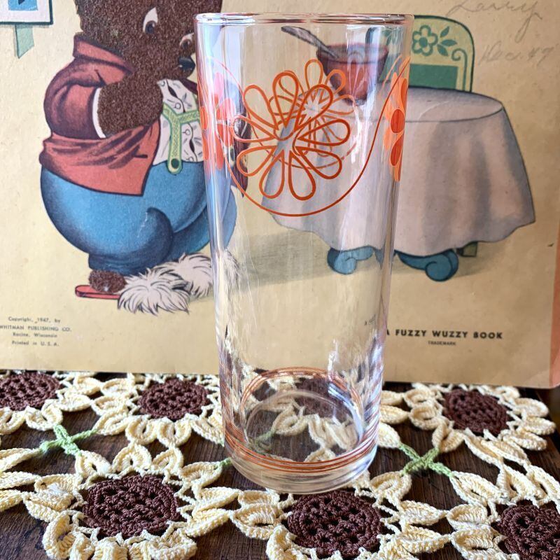 背の高いシンプルなフォルムのグラスに流れるようなフラワー模様がとっても可愛いです。