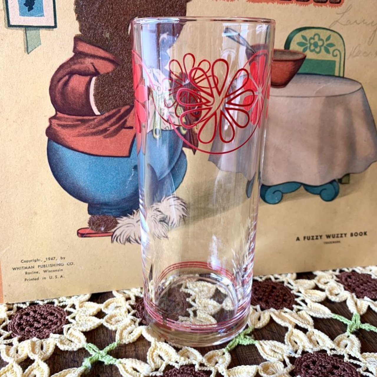 背の高いシンプルなフォルムのグラスに流れるようなフラワー模様がとっても可愛いです。