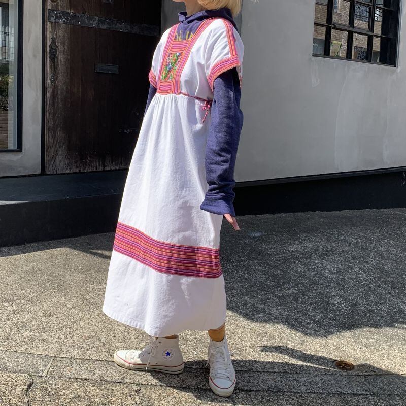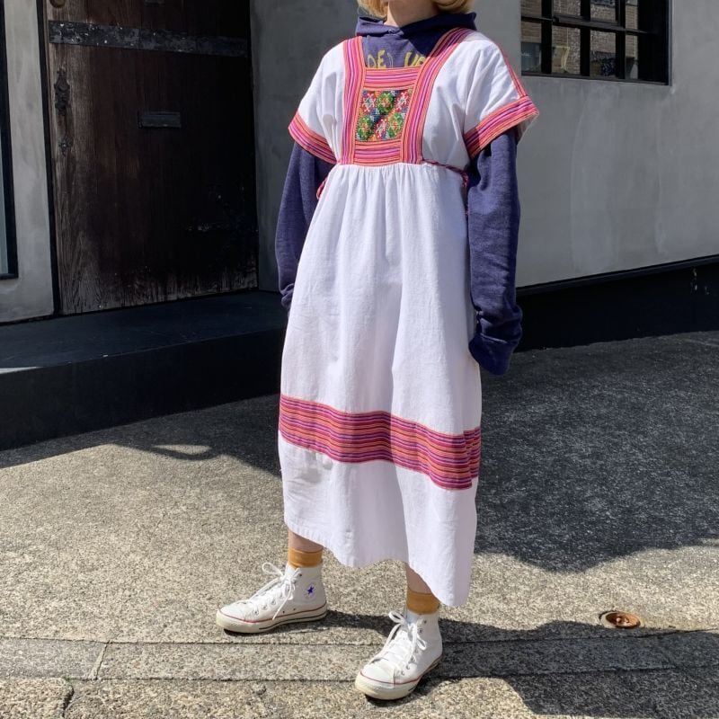 70年代 ヴィンテージ ハンドワーク刺繍のワンピースです。