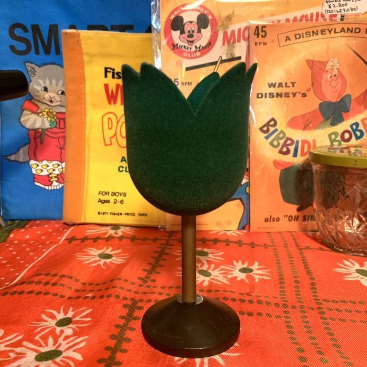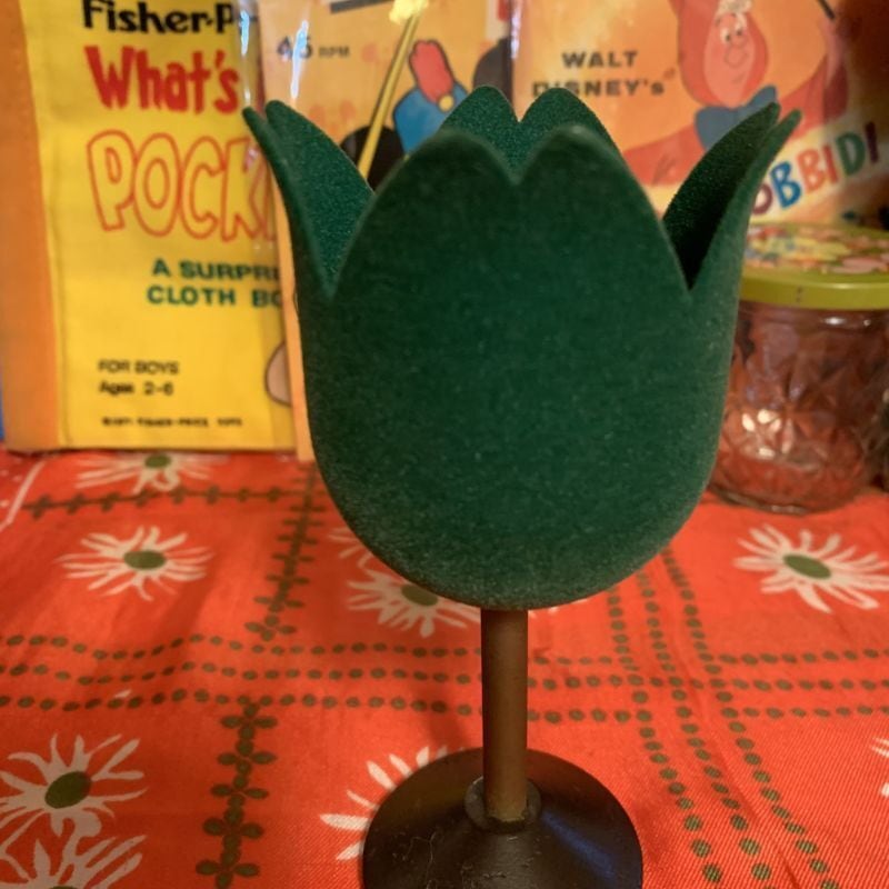 Tin製のチューリップにフロッキー加工の施された深いグリーンがとっても可愛いです。