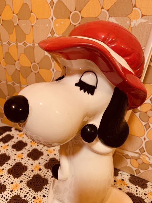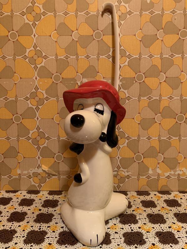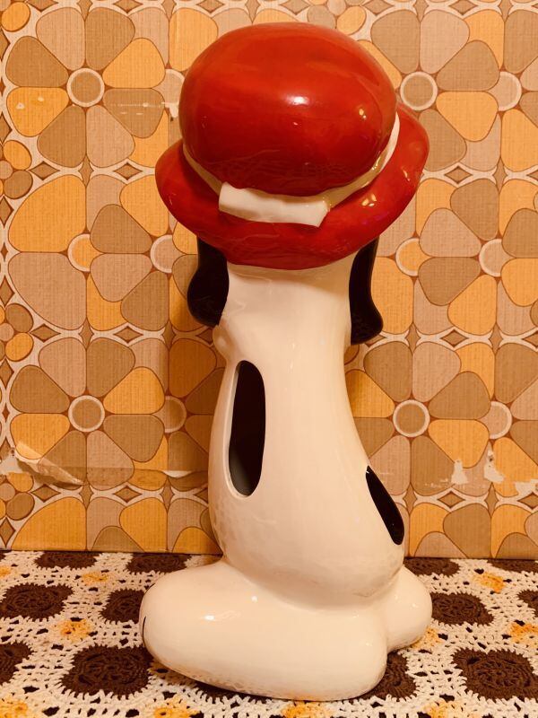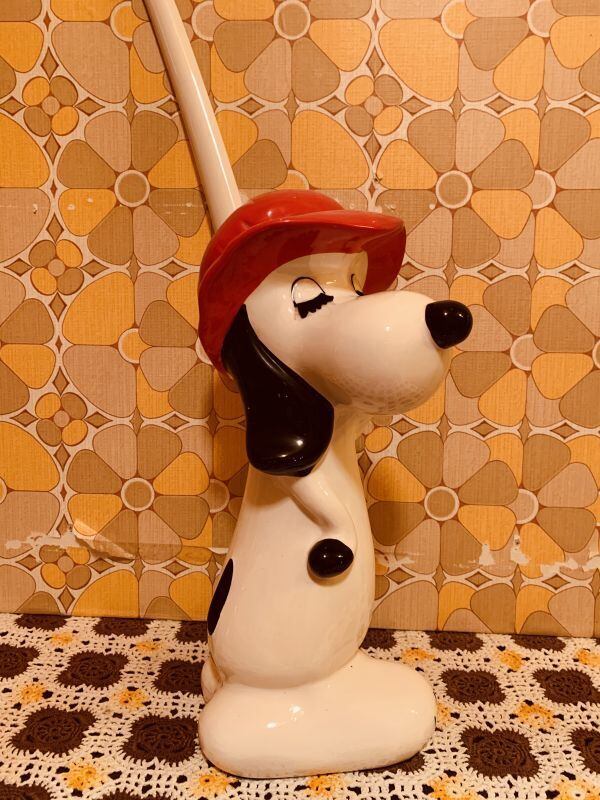 昭和レトロ 赤いHATのおすましワンちゃん。陶器製の靴ベラ入れです。おすましした表情やフェルトのまつ毛、赤いHATがとっても可愛いです。片側に靴ベラを入れる箇所があります。つやのあるペイントも可愛いですね。経年による若干の経年感はありますが気になるような大きなダメージはありません。