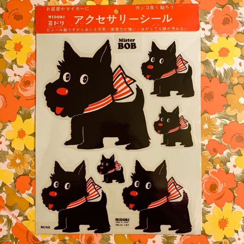 昭和レトロ DEAD STOCK未使用のインテリアシールです。赤と白のストライプのおりぼんや赤いお鼻にペロッと舌をだした表情が可愛いですね。ビニール製なので水に強いのもポイントです。外袋を新しいものに入れ替えてあります。
