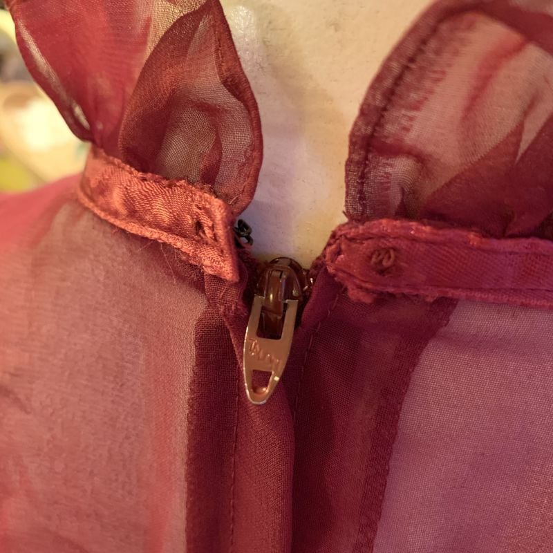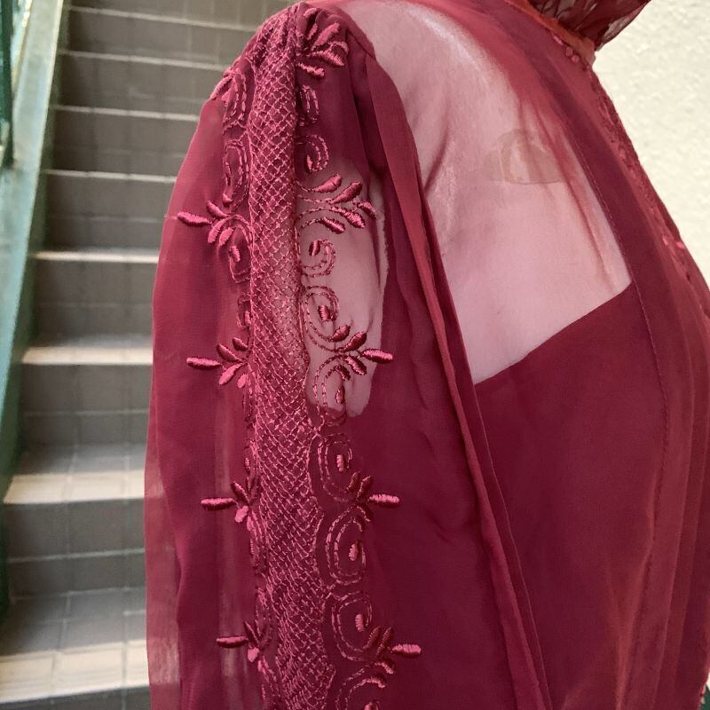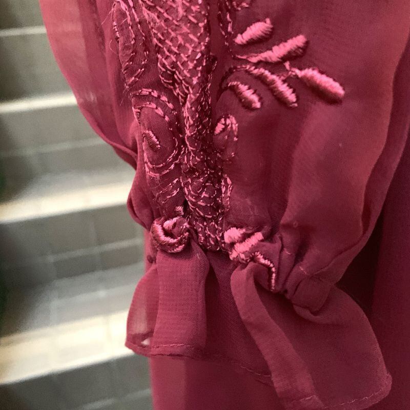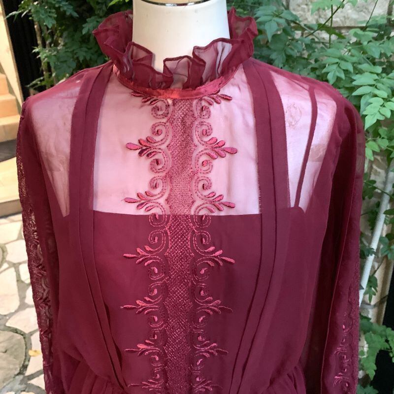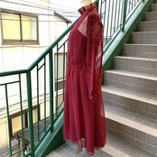 ボルドーカラーのシアーがとっても可愛い1着です。