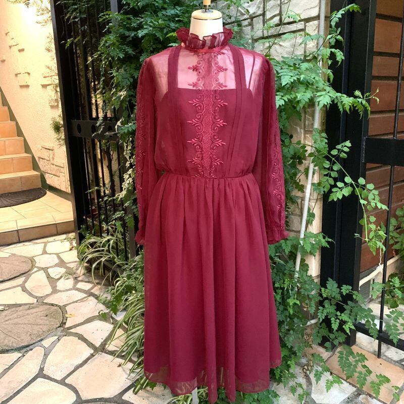 70年代から80年代 当時のハンドメイド1点もの ヴィンテージ シアー素材のドレスです。
