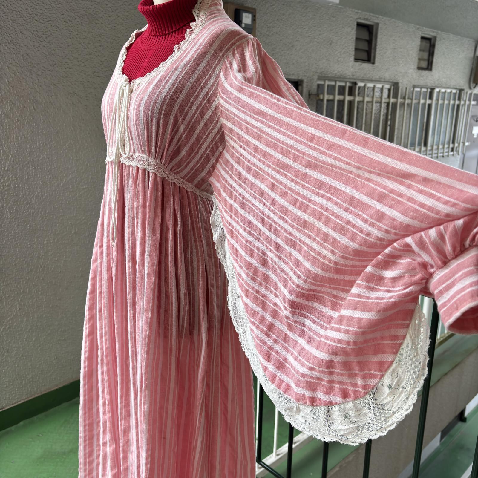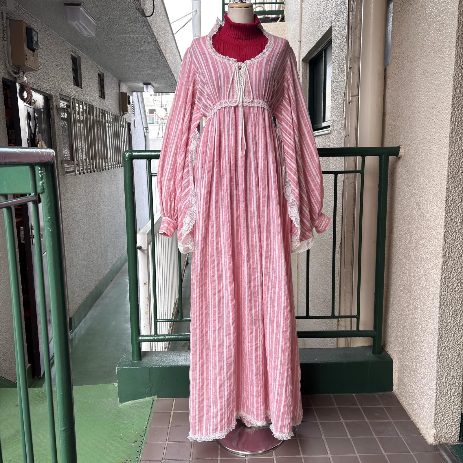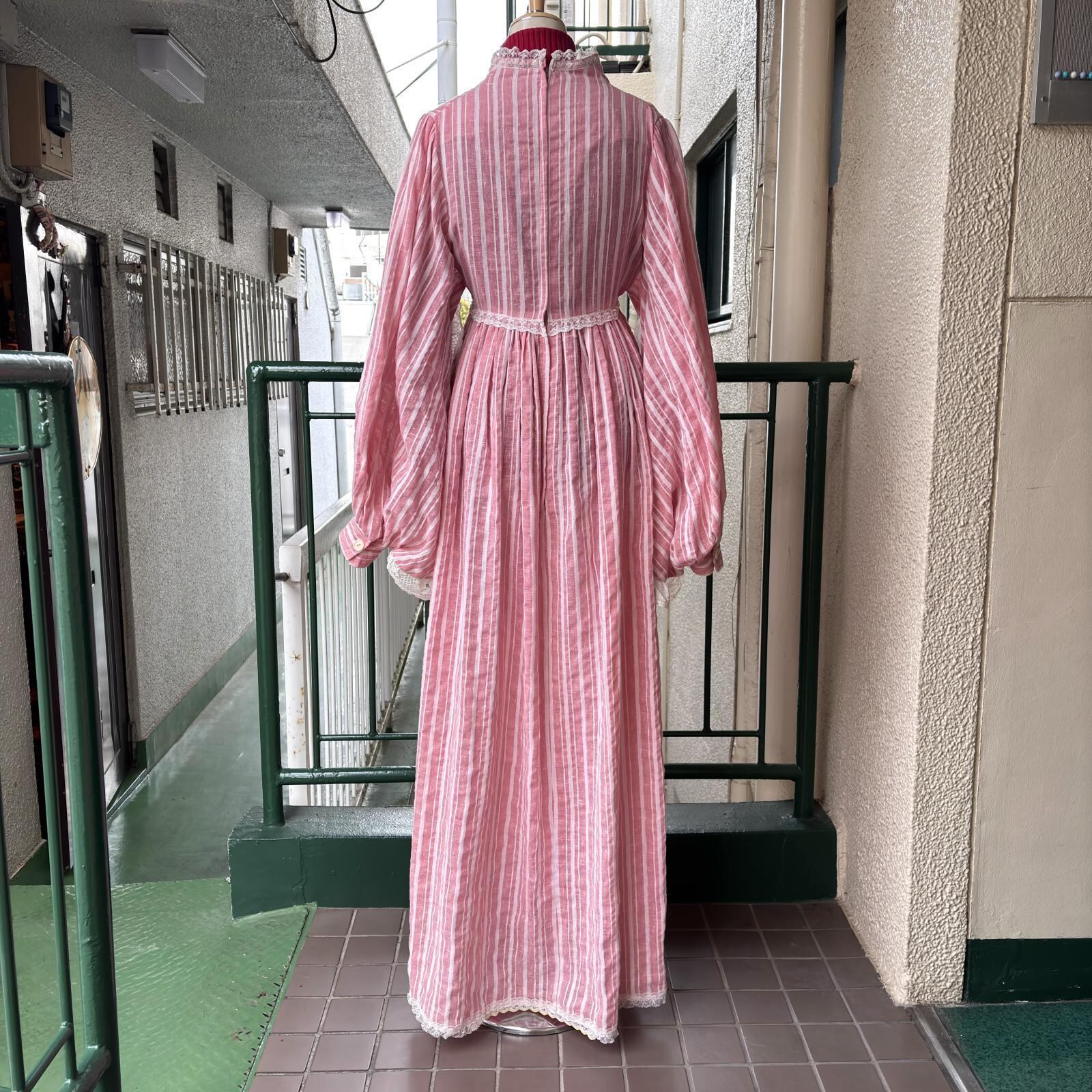 70年代 ヴィンテージ 当時のハンドメイド1点もの フラワーレース バルーンスリーブ ドレスです。
