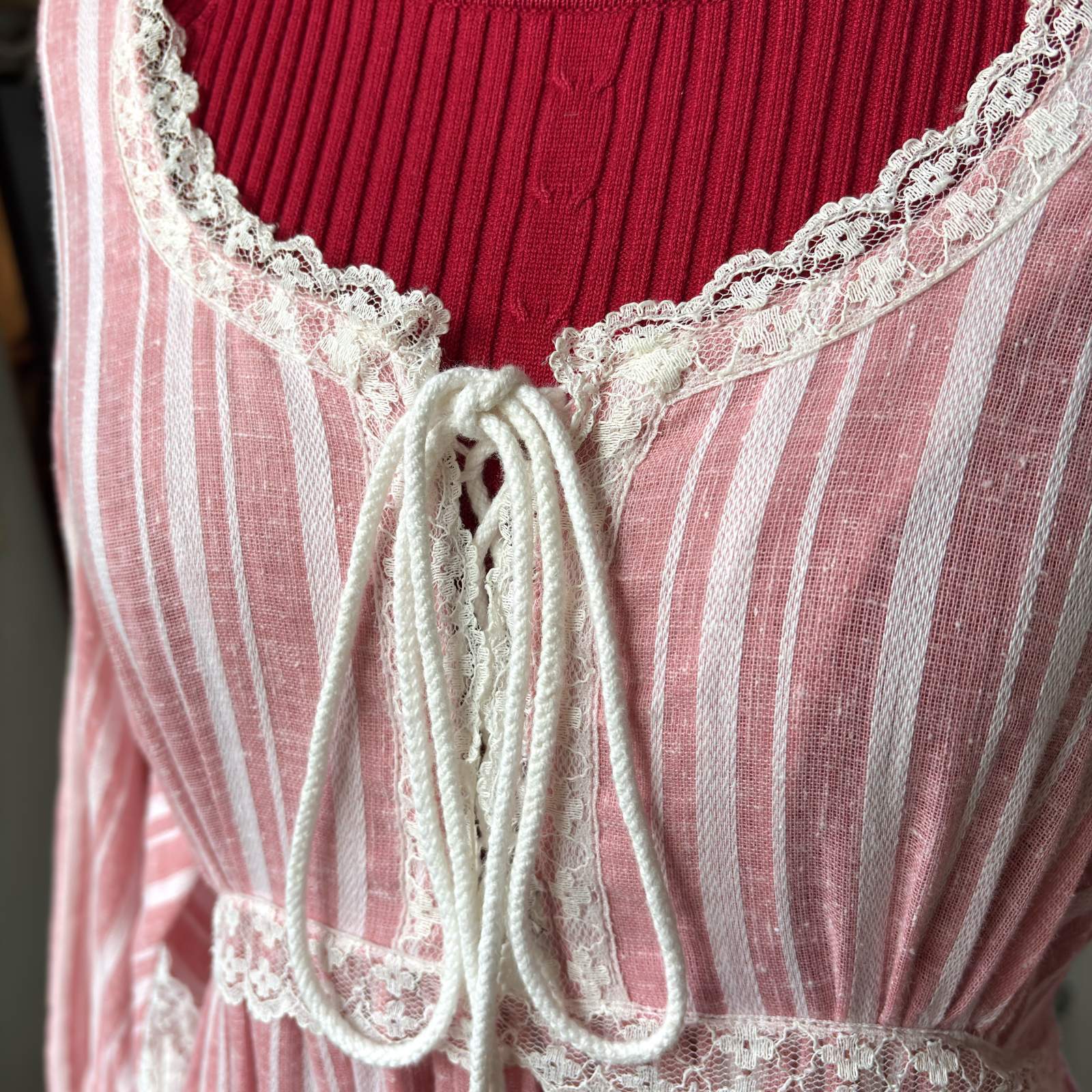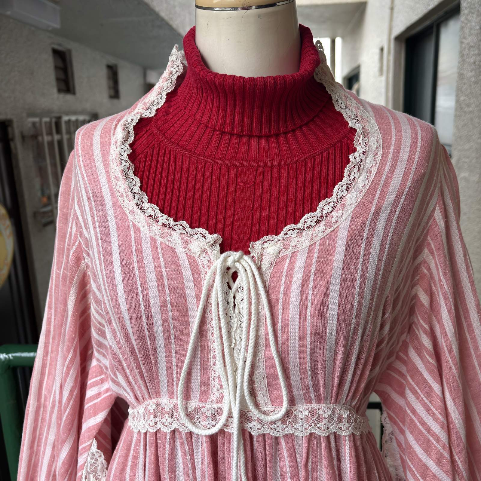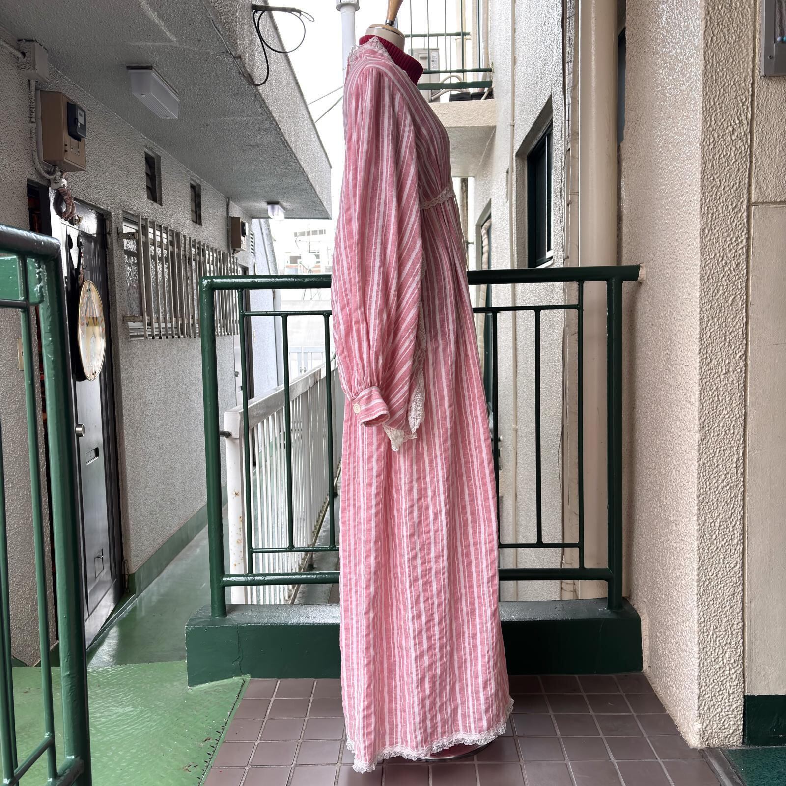 70年代 ヴィンテージ 当時のハンドメイド1点もの フラワーレース バルーンスリーブ ドレスです。