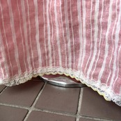 裾のフラワーレースが切れてしまった箇所が背面側に2ヶ所あり、クリームイエローがアクセントのアンティークのフラワーレースをリペアしております。