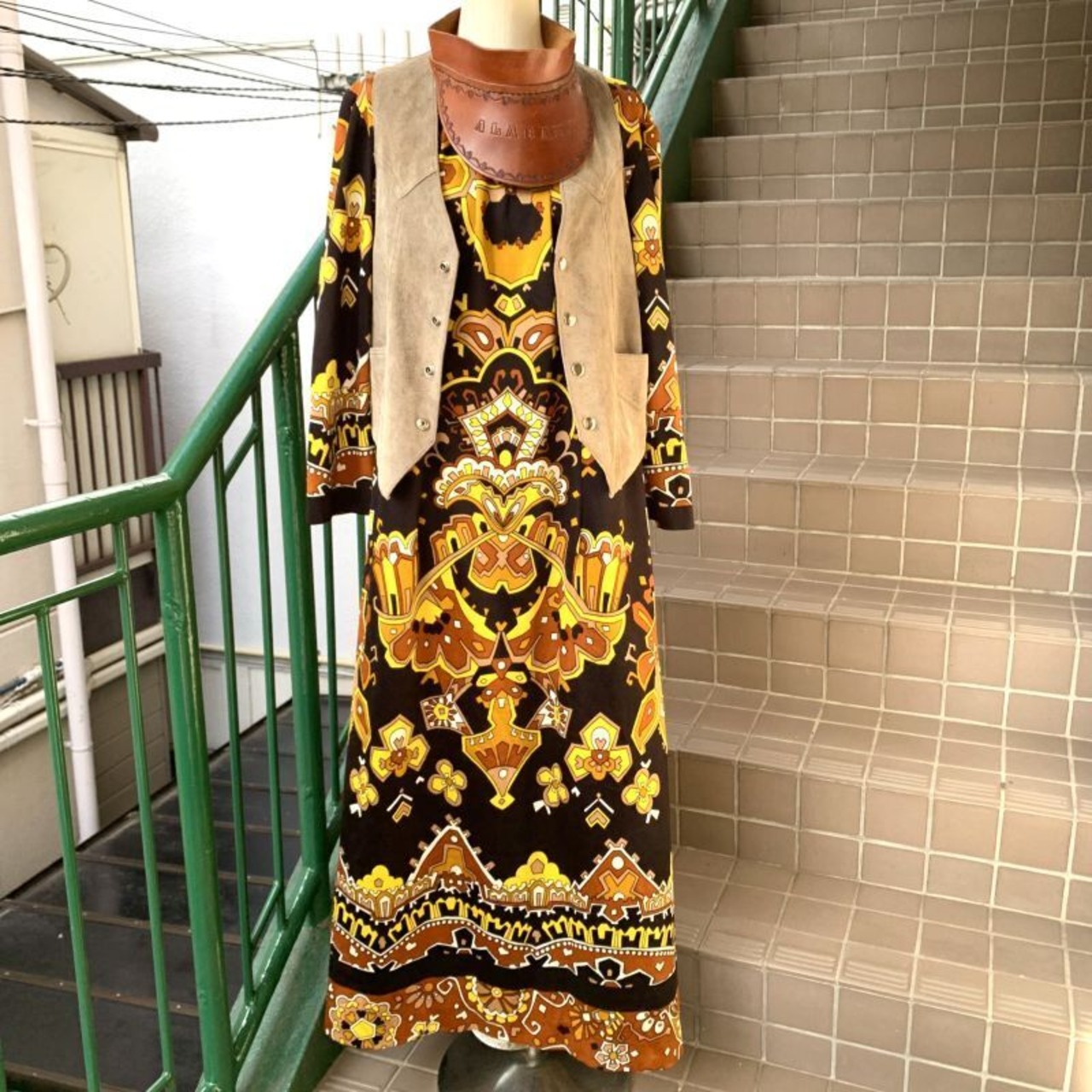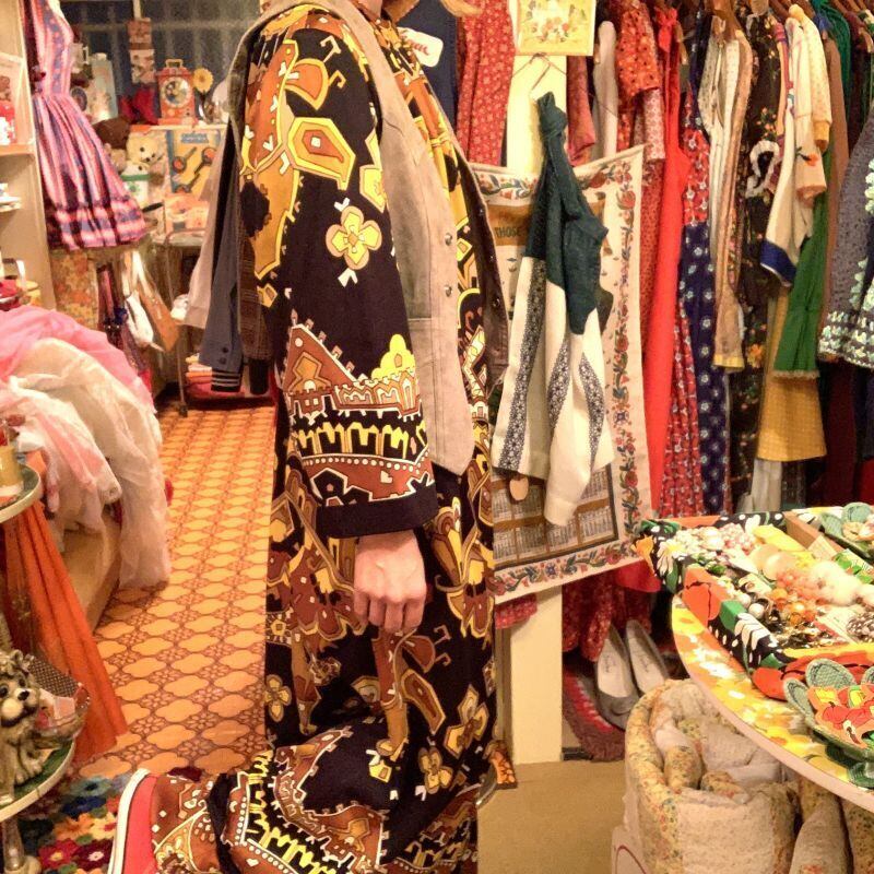 70年代 ヴィンテージ 当時のハンドメイド1点もの ロングドレスです。