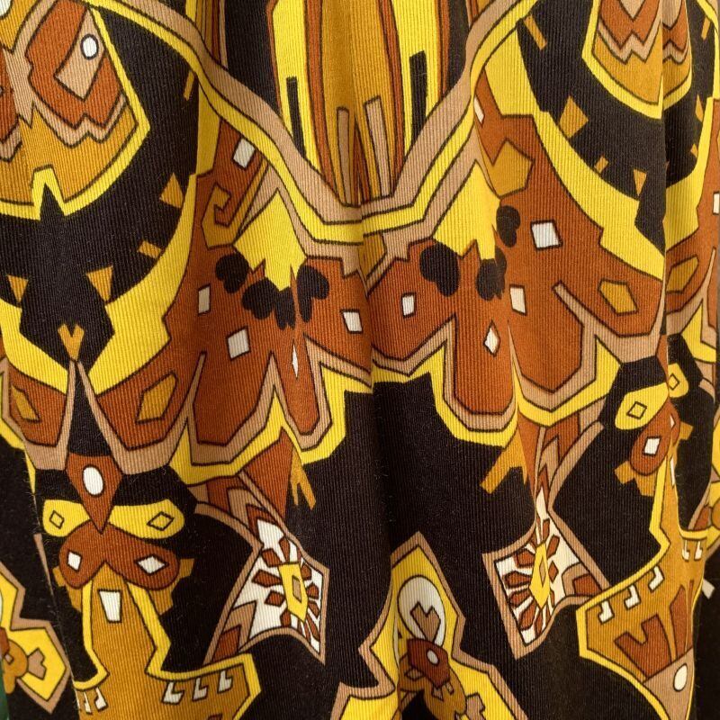 経年による全体的な若干の毛羽立ち、フロントの胸元にごく僅かな薄らとしたシミ、背面側のヒップ下の方にごく僅かな擦れが見られますが柄に紛れて、あまり気にならない程度かと思います。