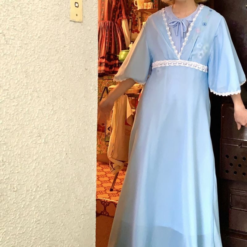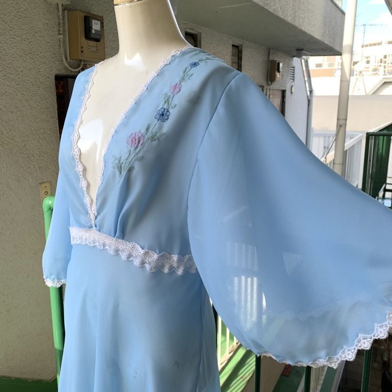 60'S〜70'S Euro Vintage flower embroidery lingerie dress。