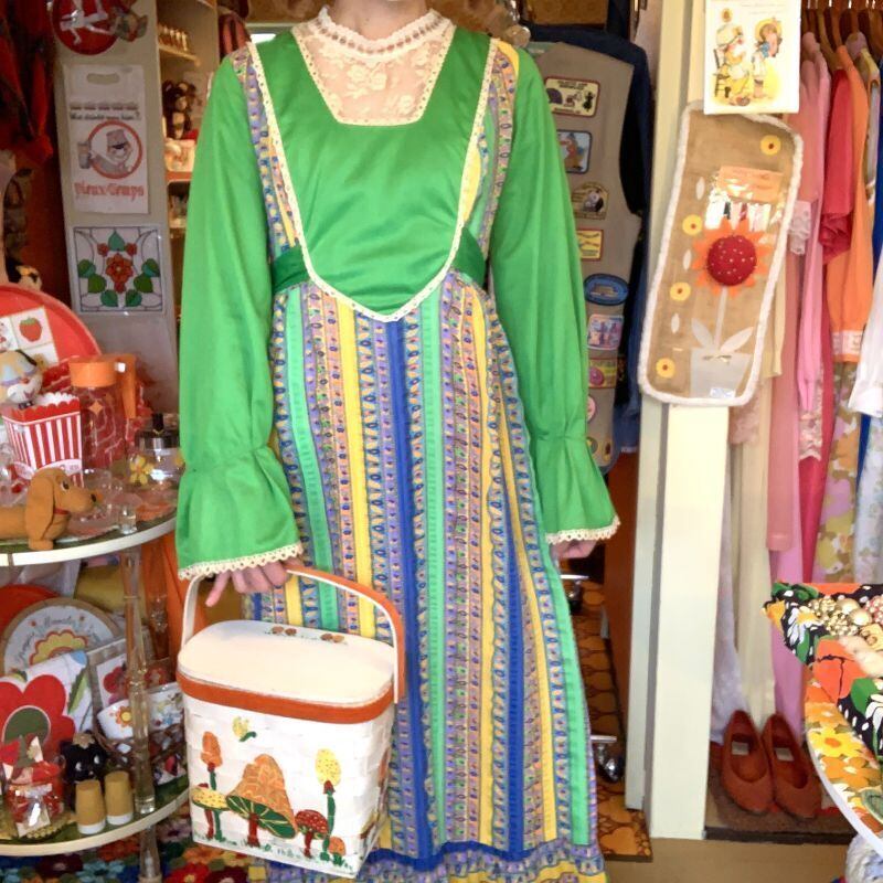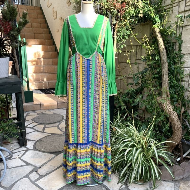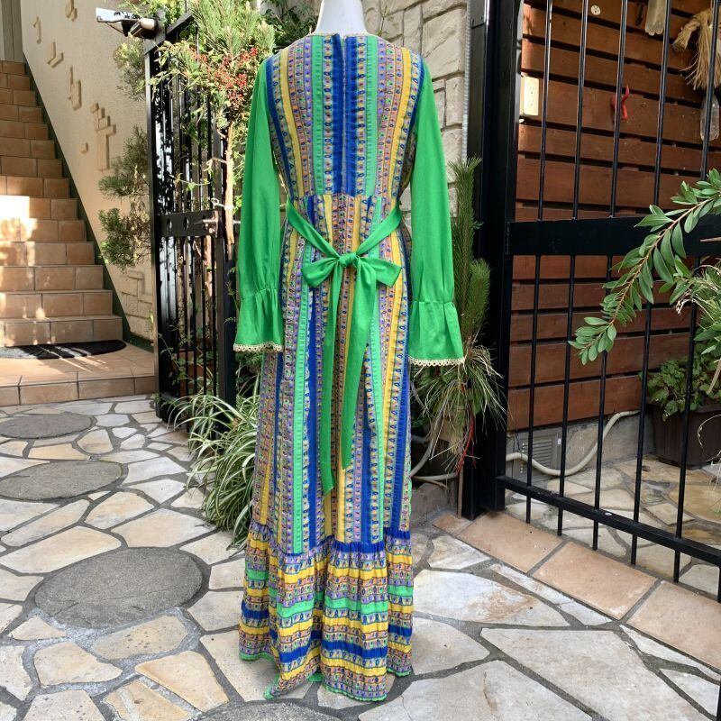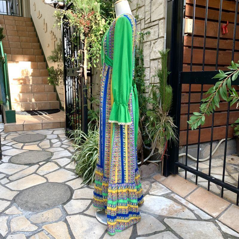 70'S USA GR Flower line vintage dress。