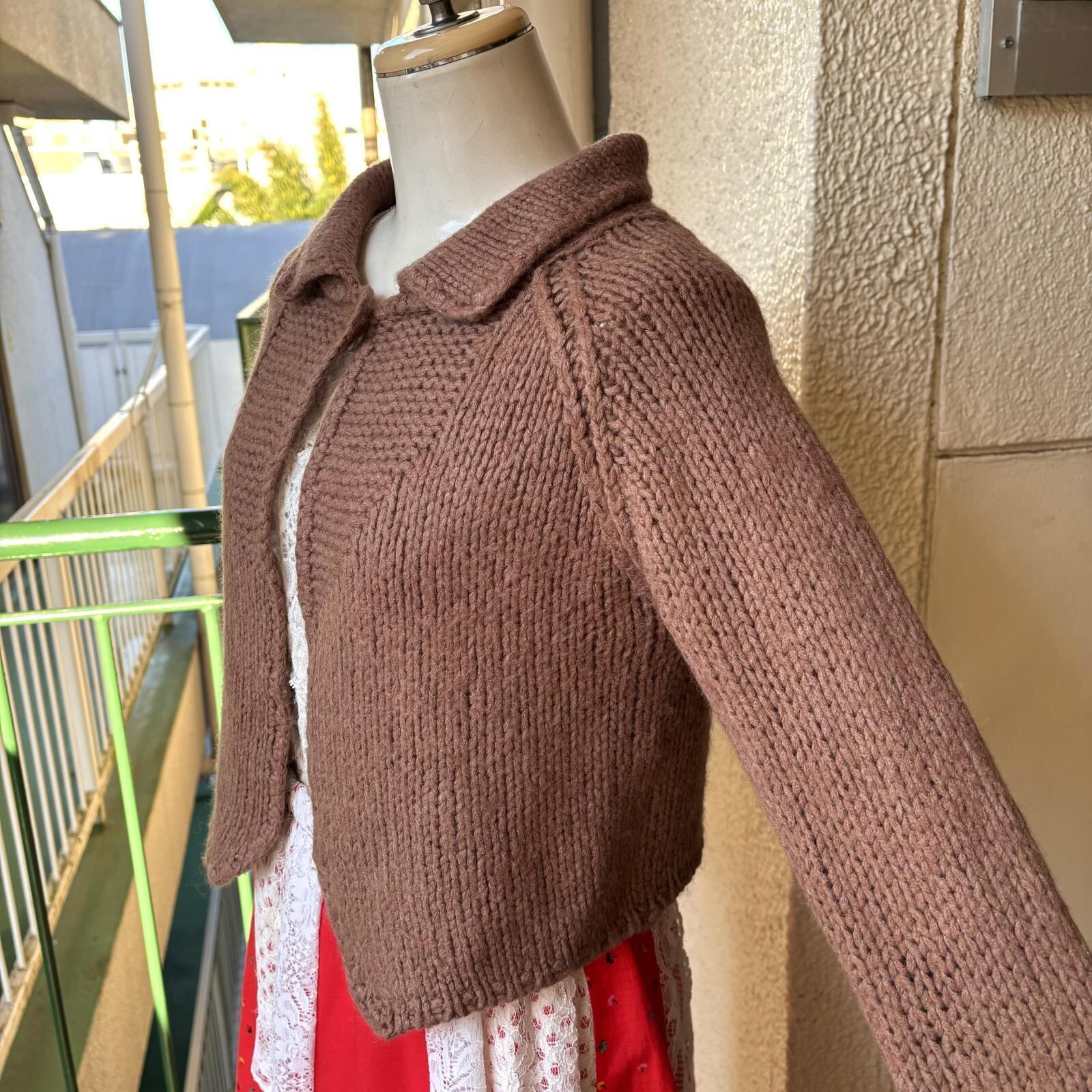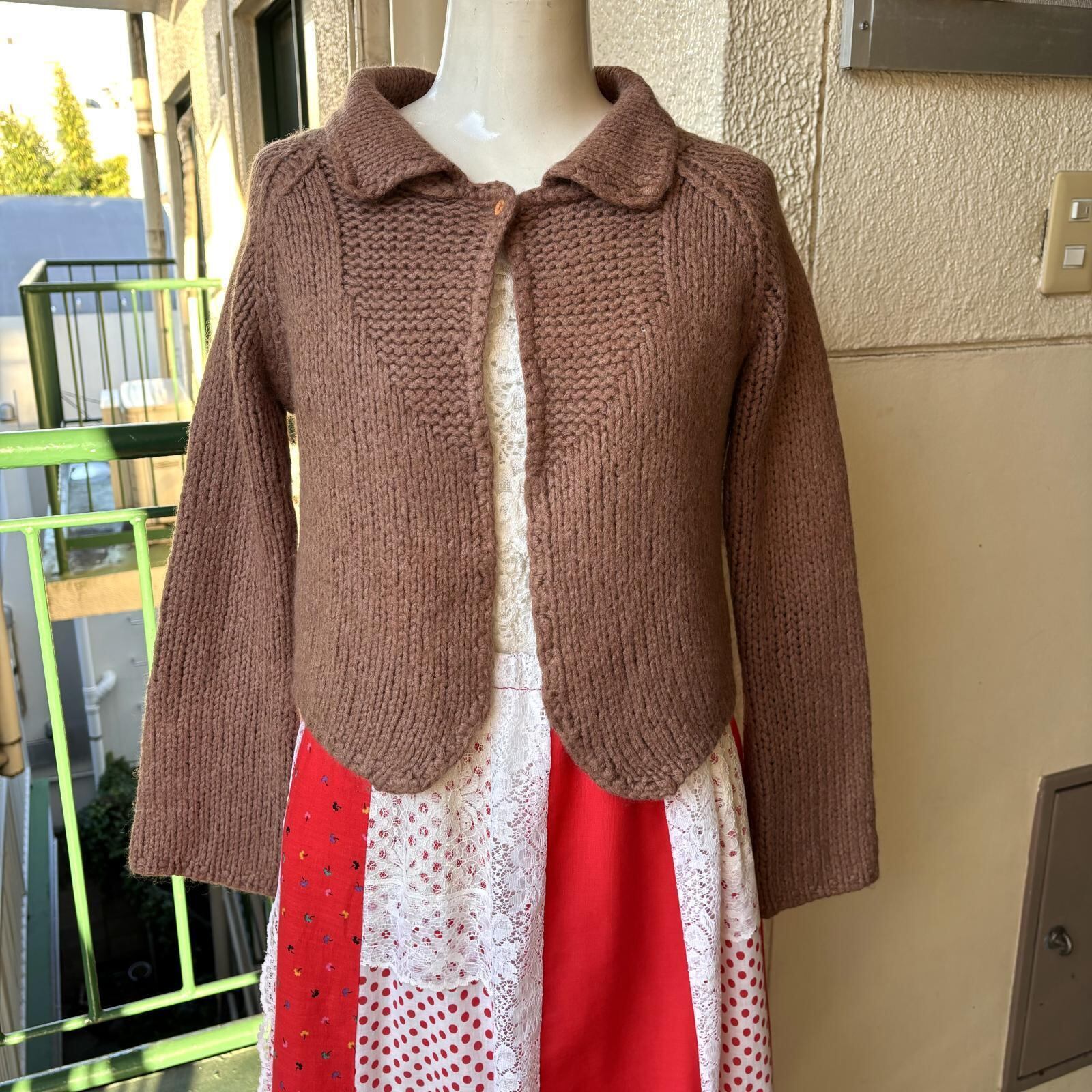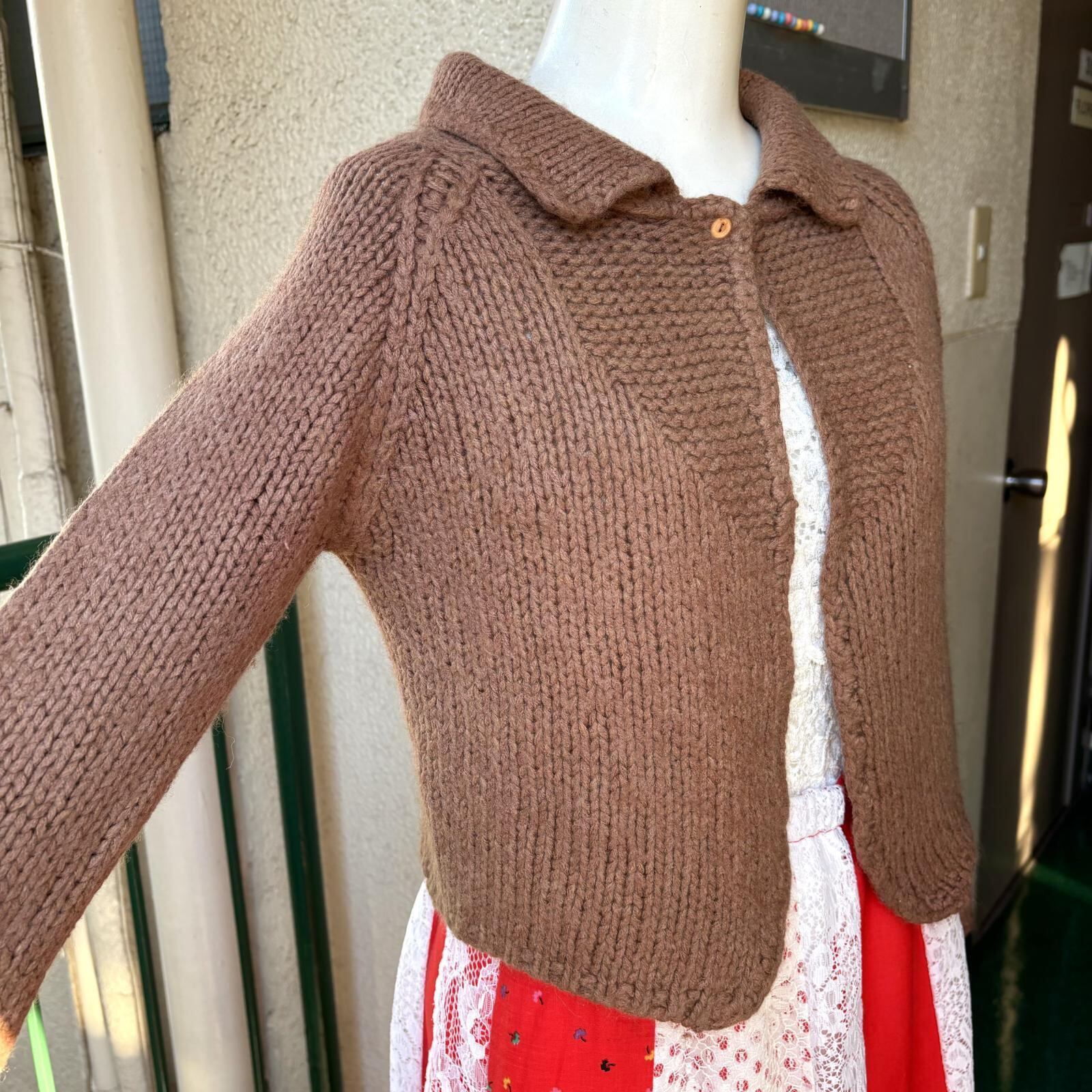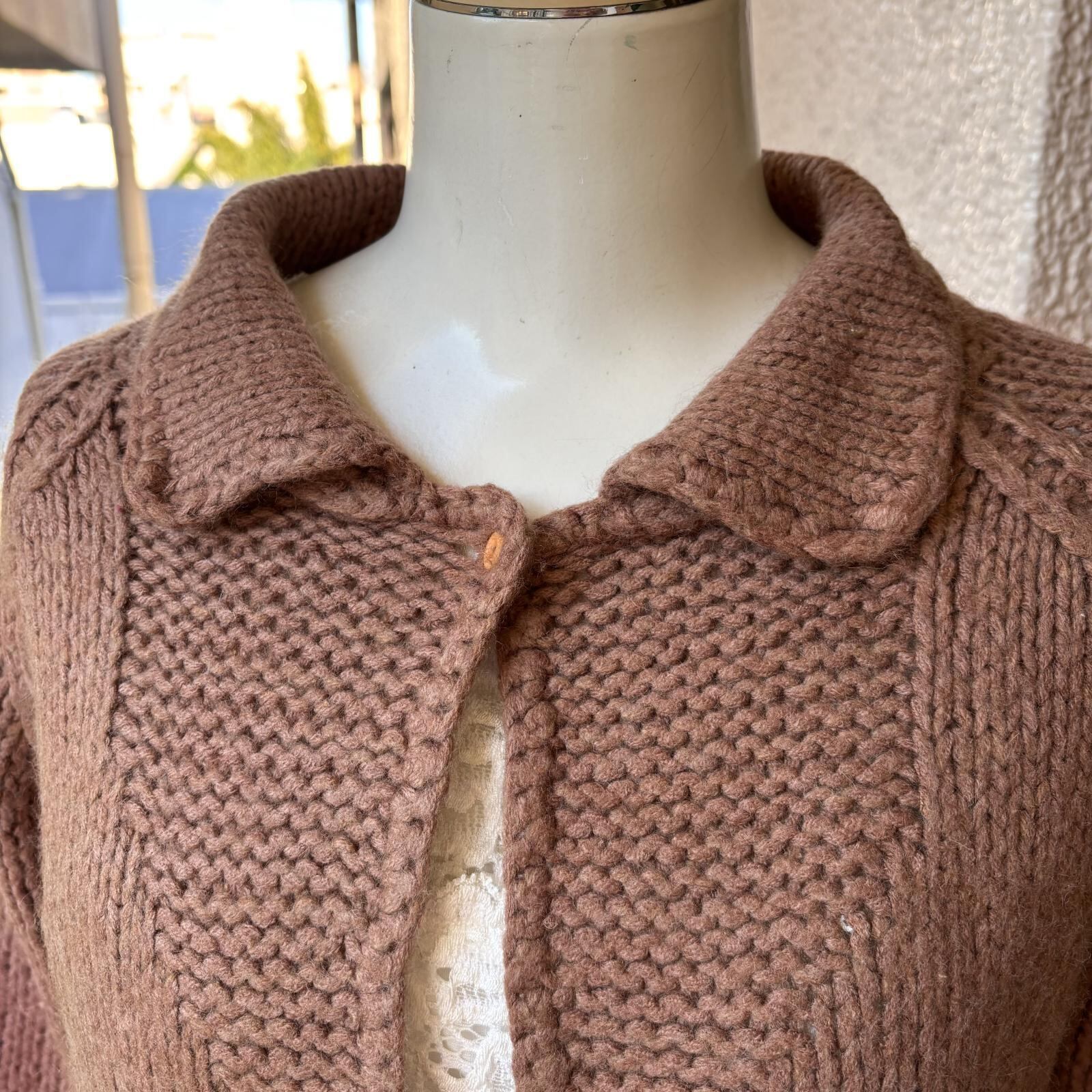 70年代 ヴィンテージ 当時のハンドメイド1点もの マロンベージュ ニットカーディガンです。