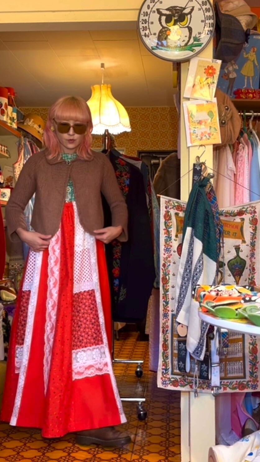 経年によるプレスしたような編み目やハンドメイド感がありますが、ヴィンテージならではなとっても可愛い雰囲気があります。