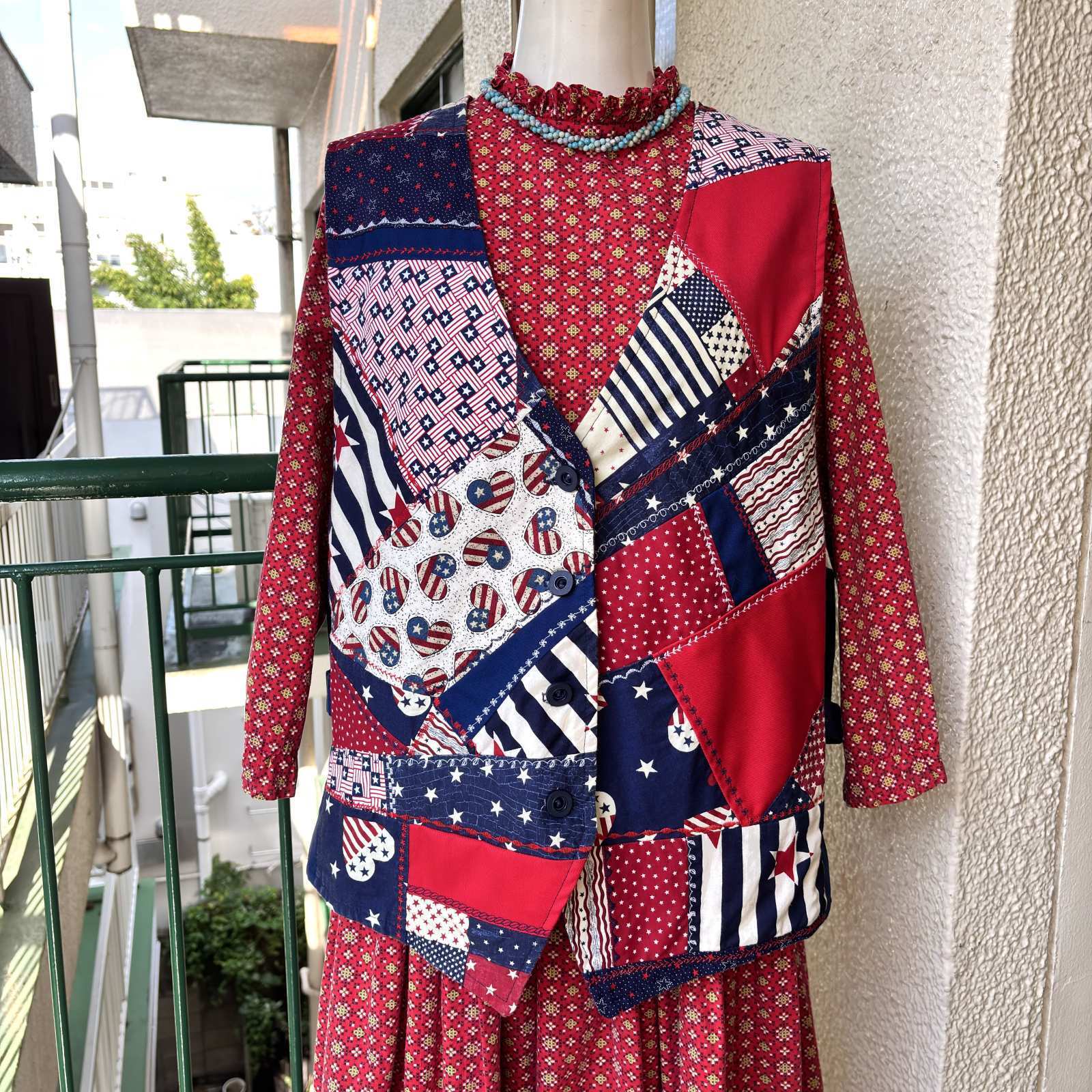 70年代から80年代 当時のハンドメイド1点もの ヴィンテージ USA柄パッチワーク ベストです。