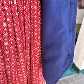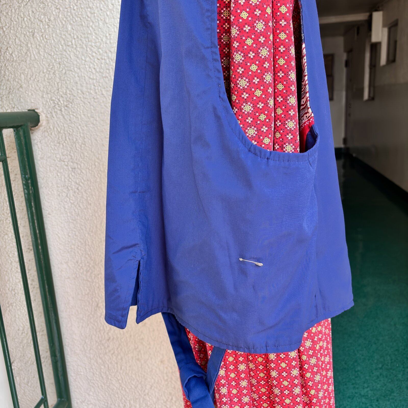 両サイドのリボン紐の途中の箇所に内側から安全ピンで留められており、安全ピンは取り外しが可能です。