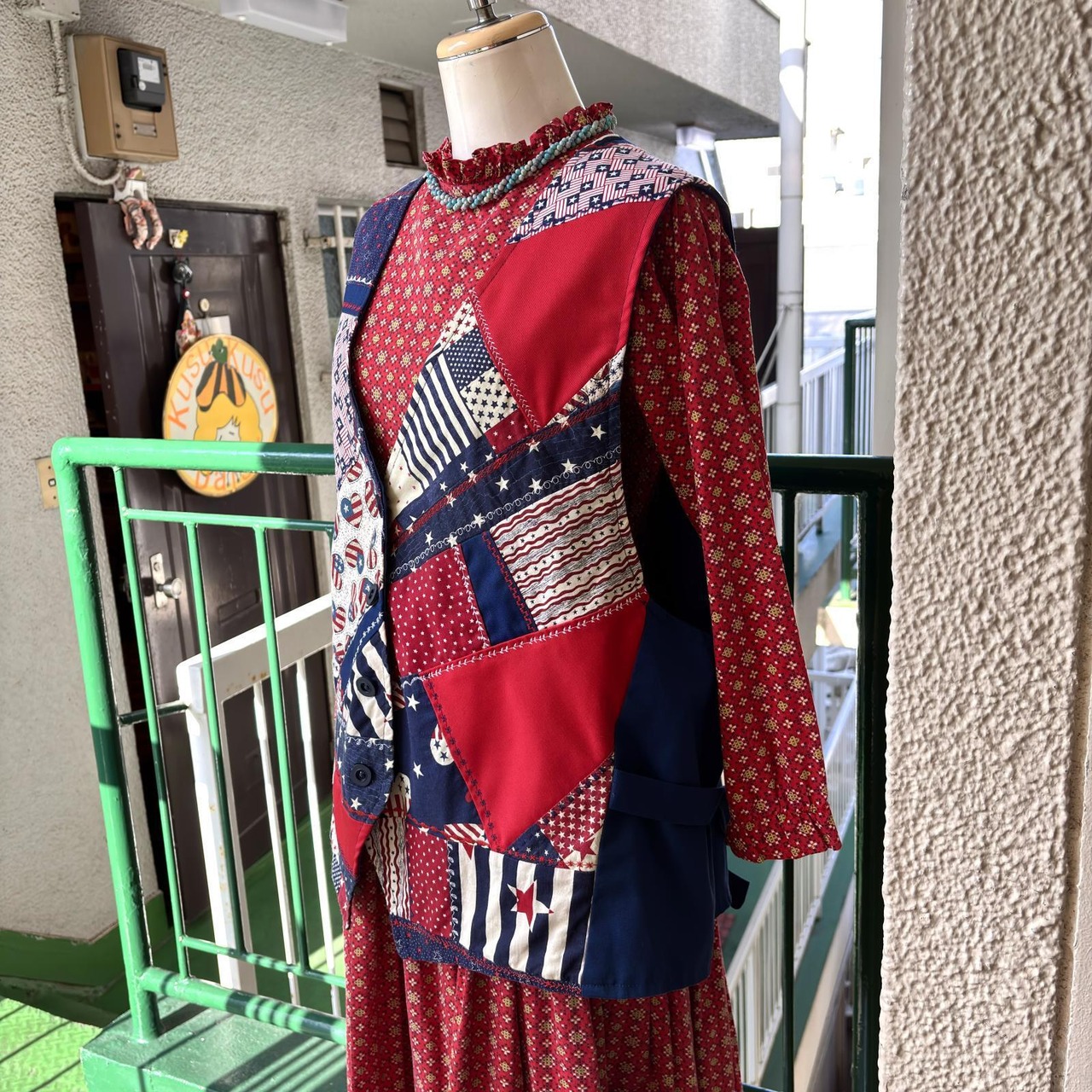 70'S〜80'S USA Vintage usa pattern patchwork vest。