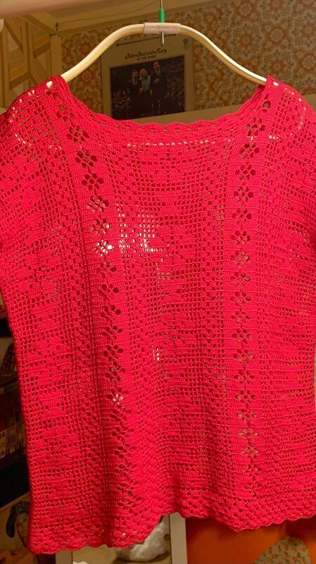70'S USA Vintage flower motif crochet top。